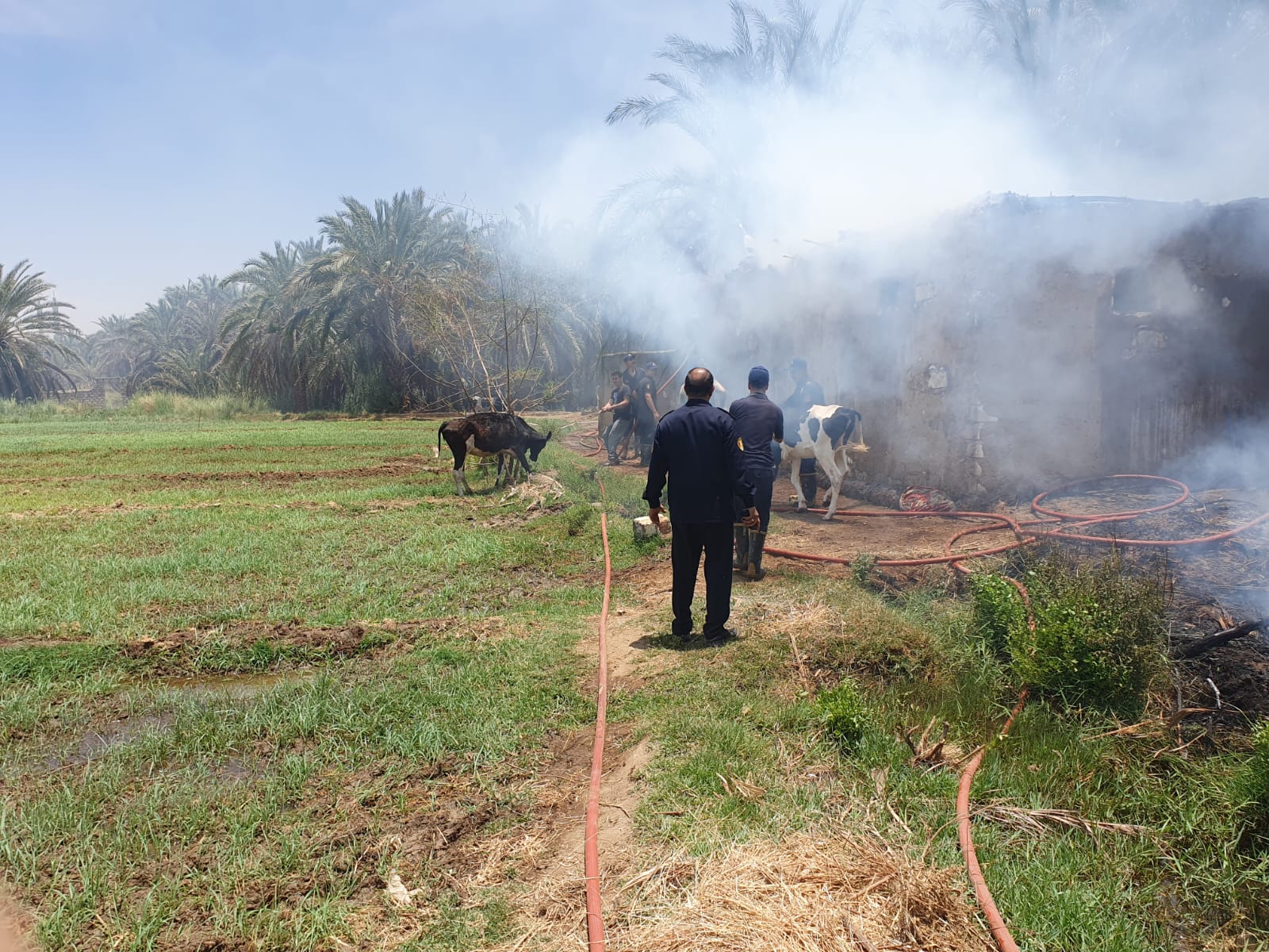حريق في مزرعة نخيل وحظائر بالوادي الجديد| صور