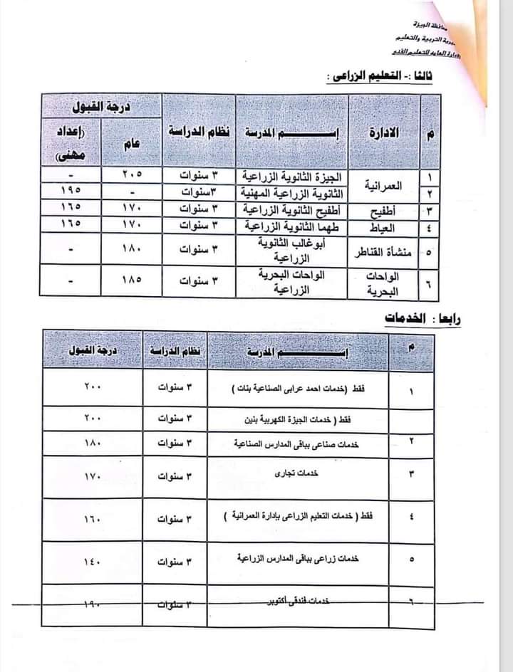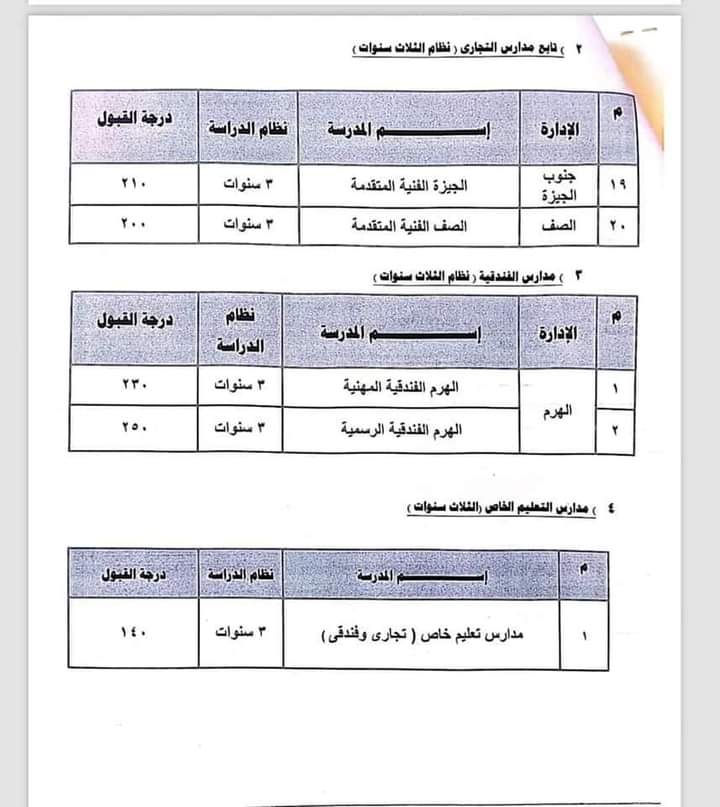ننشر جداول تنسيق القبول بالمدارس الثانوية والفنية 2024 بالجيزة| صور