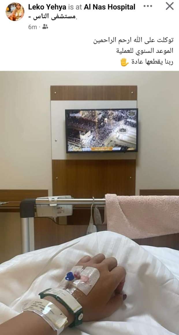 وكتبت لقاء سويدان منشورا عبر حسابها الشخصي بموقع فيسبوك، ونشرت صورة لها من داخل غرفة العمليات، وعلقت، توكلت على الله أرحم الراحمين، الموعد السنوي للعملية، ربنا يقطعها عادة.