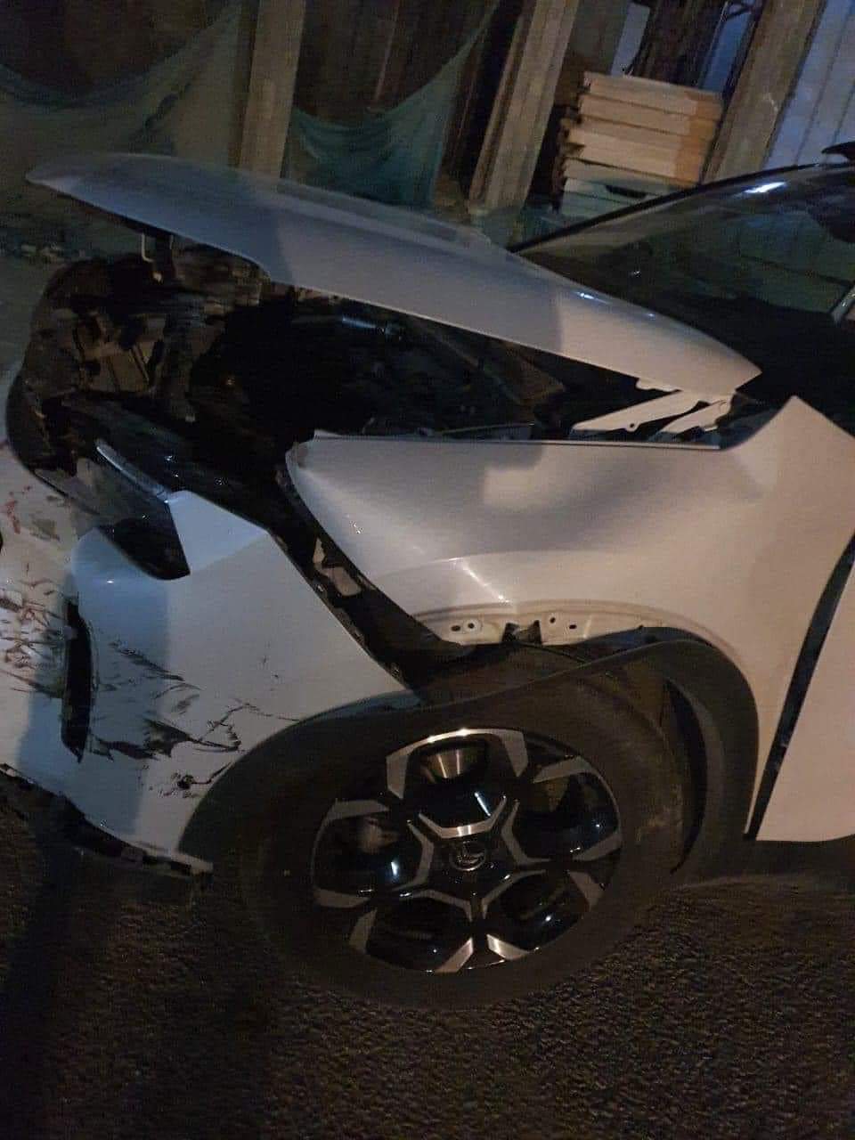 وتظهر الصور الأولية للحادث تحطم مقدمة السيارة .