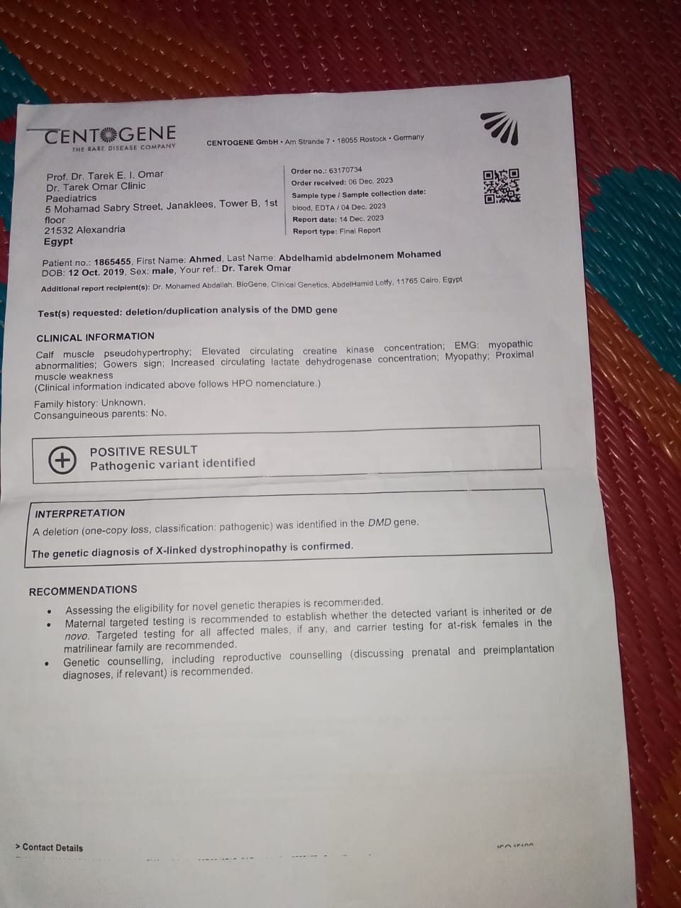 استغاثت والدة طفل يدعى أحمد عبد الحميد عبد المنعم، من مركز إدكو بمحافظة البحيرة، لعلاج نجلها المصاب بمرض ضمور العضلات دوشين، حيث أصيب الطفل البالغ من العمر 8 أعوام و6 أشهر بالمرض، في سن مبكرة من طفولته.
