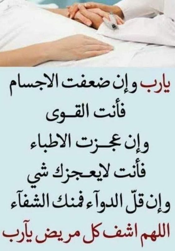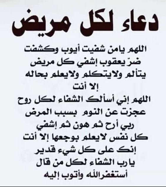 - اللهم أنزل شفائك لمن مسه الضر وأنهكه الوجع.