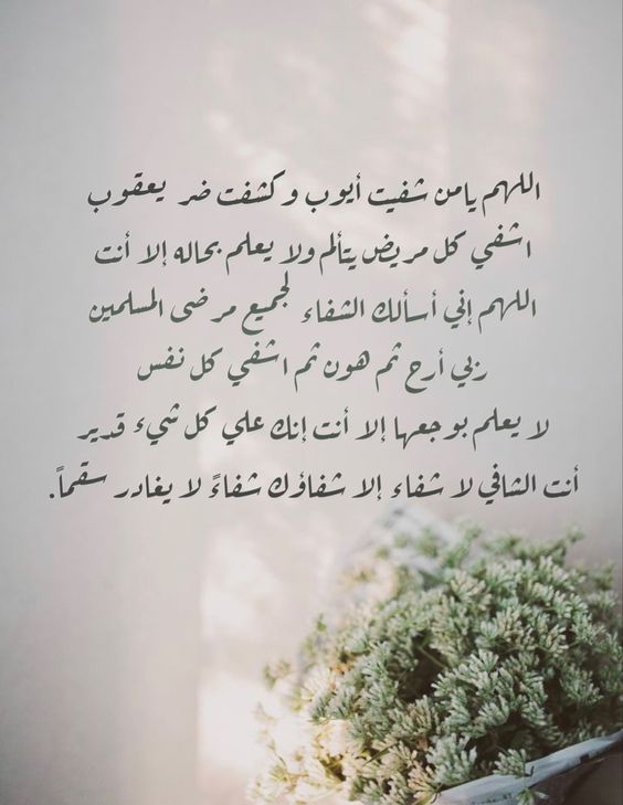 - اللهم اشفي كل نفس ذاقت طعم الألم من المرض وارزقها الشفاء العاجل.