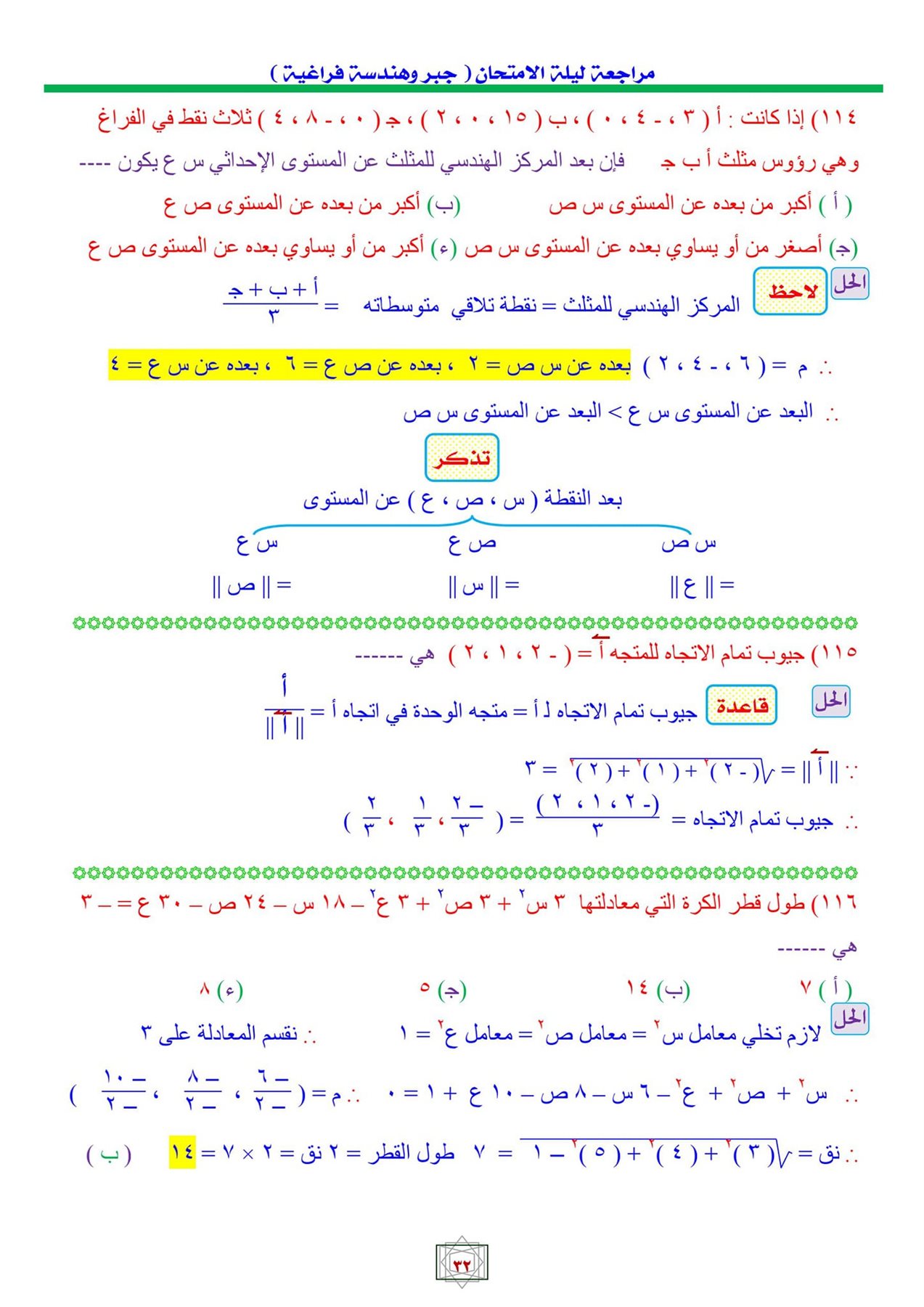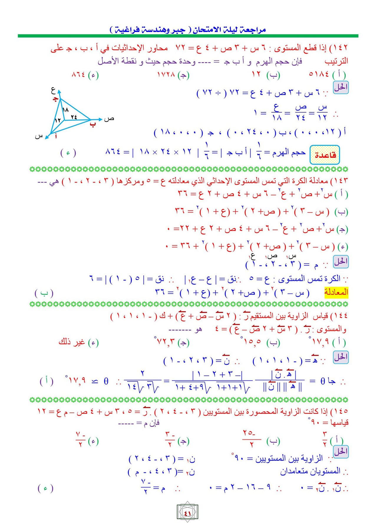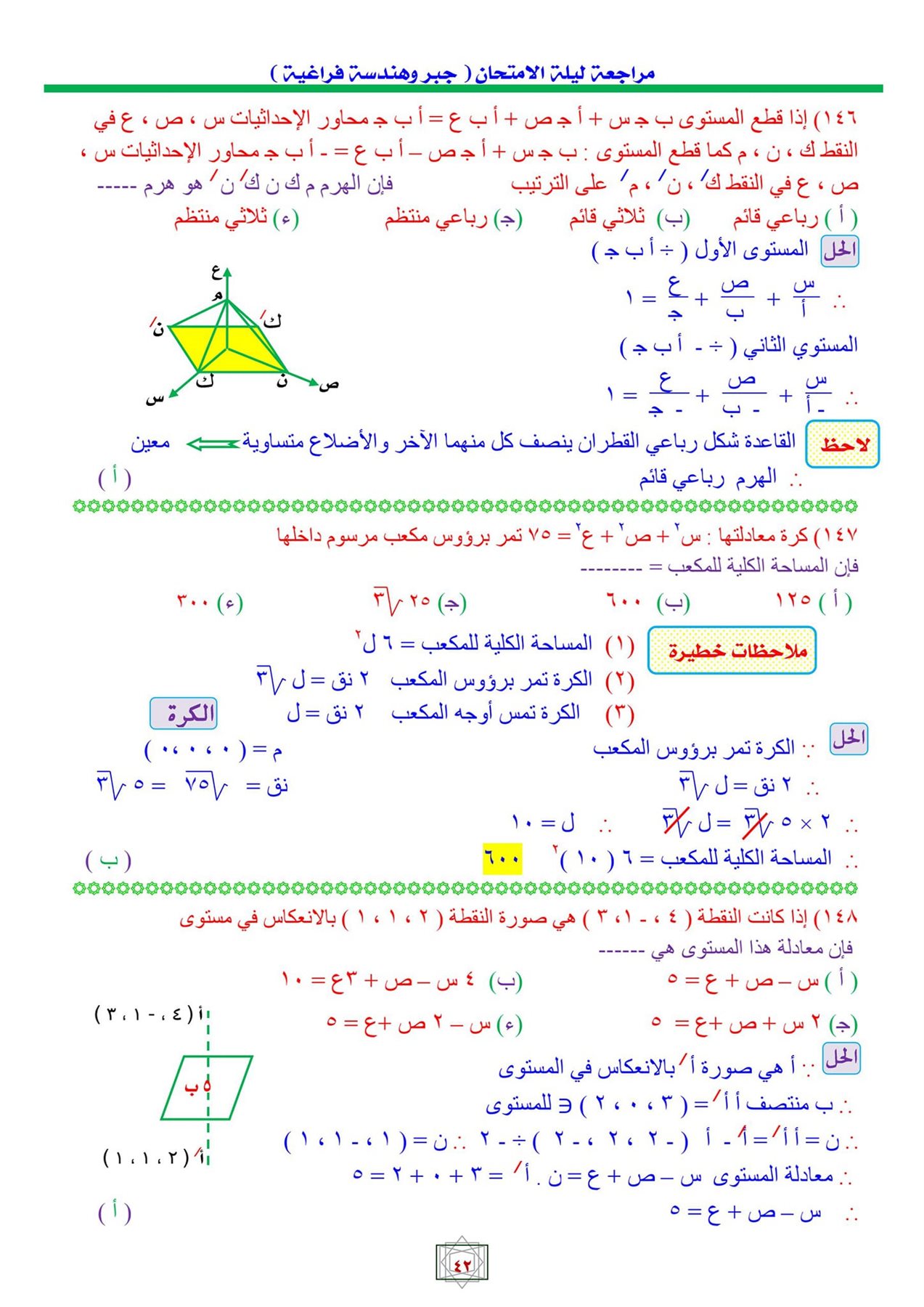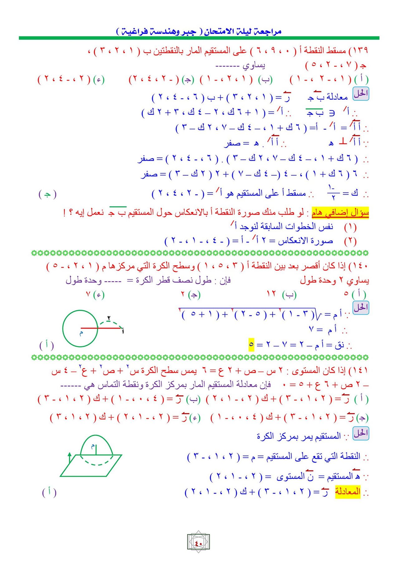 مراجعة جبر وهندسة فراغية للصف الثالث الثانوي 2024