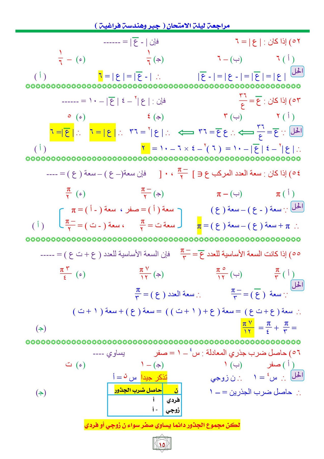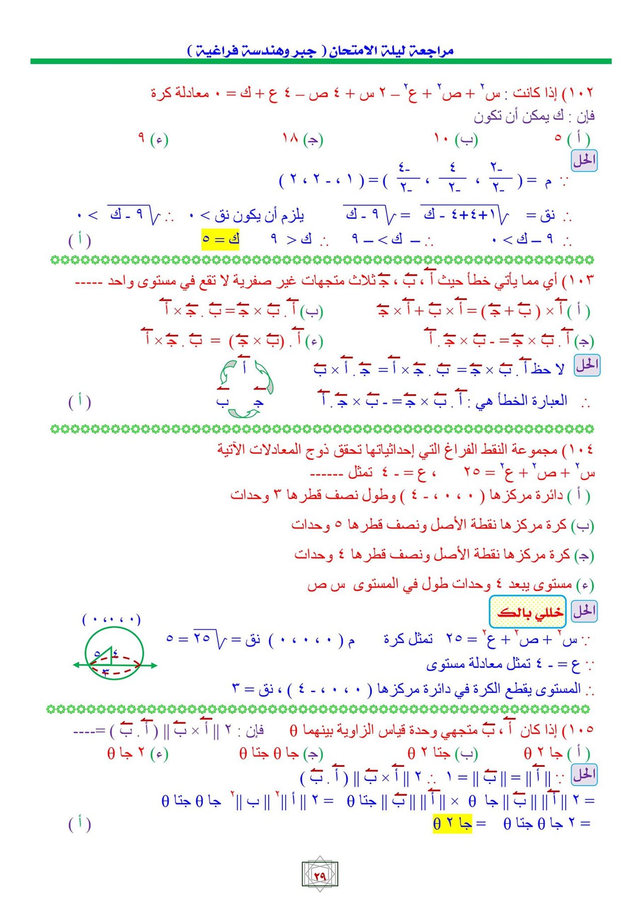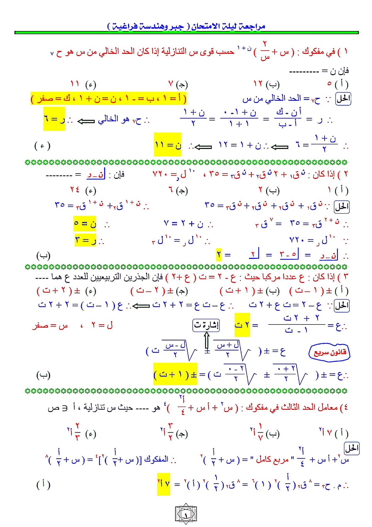 مراجعة جبر وهندسة فراغية للصف الثالث الثانوي 2024
