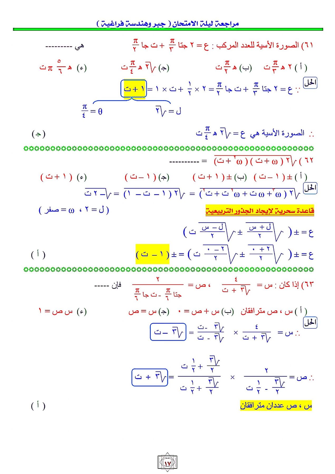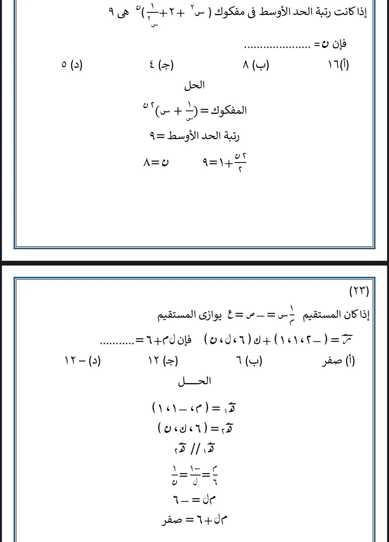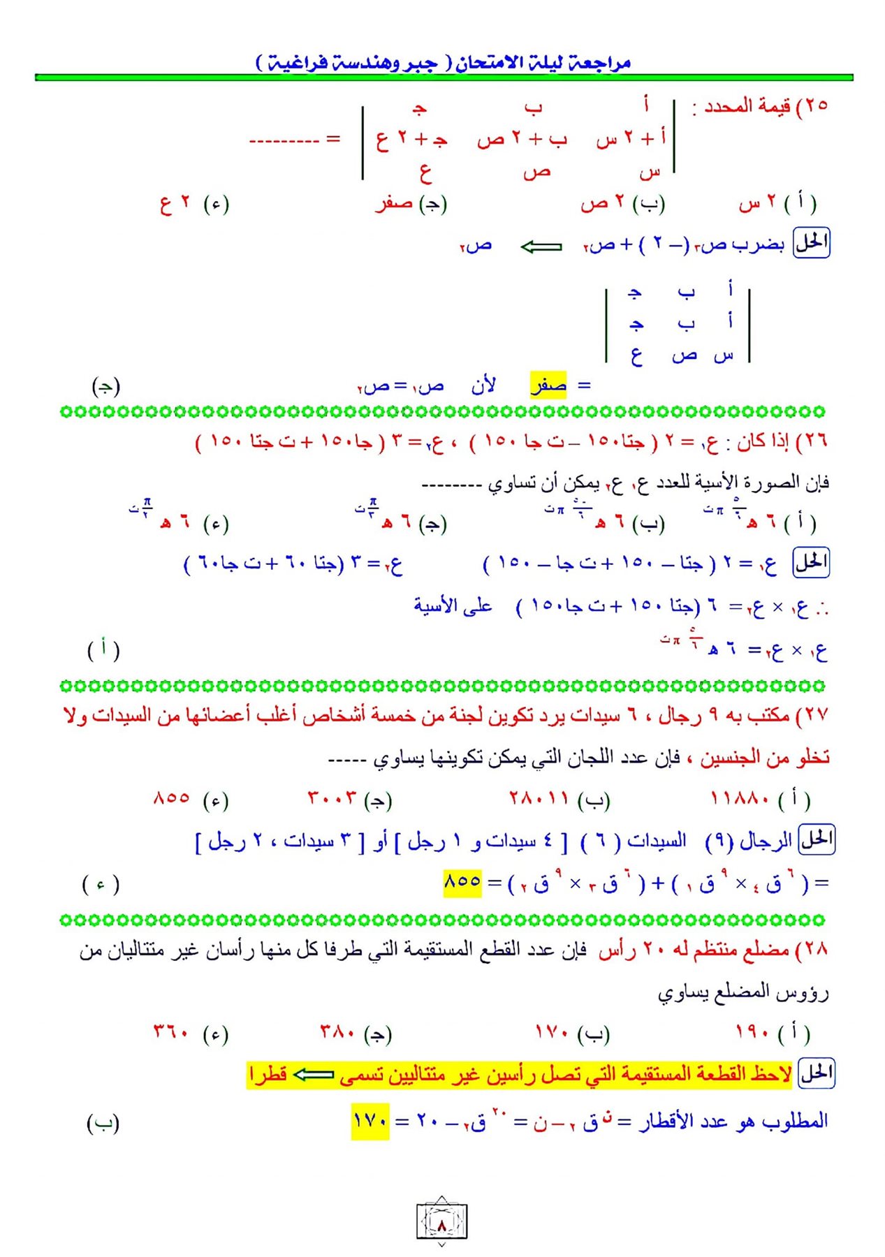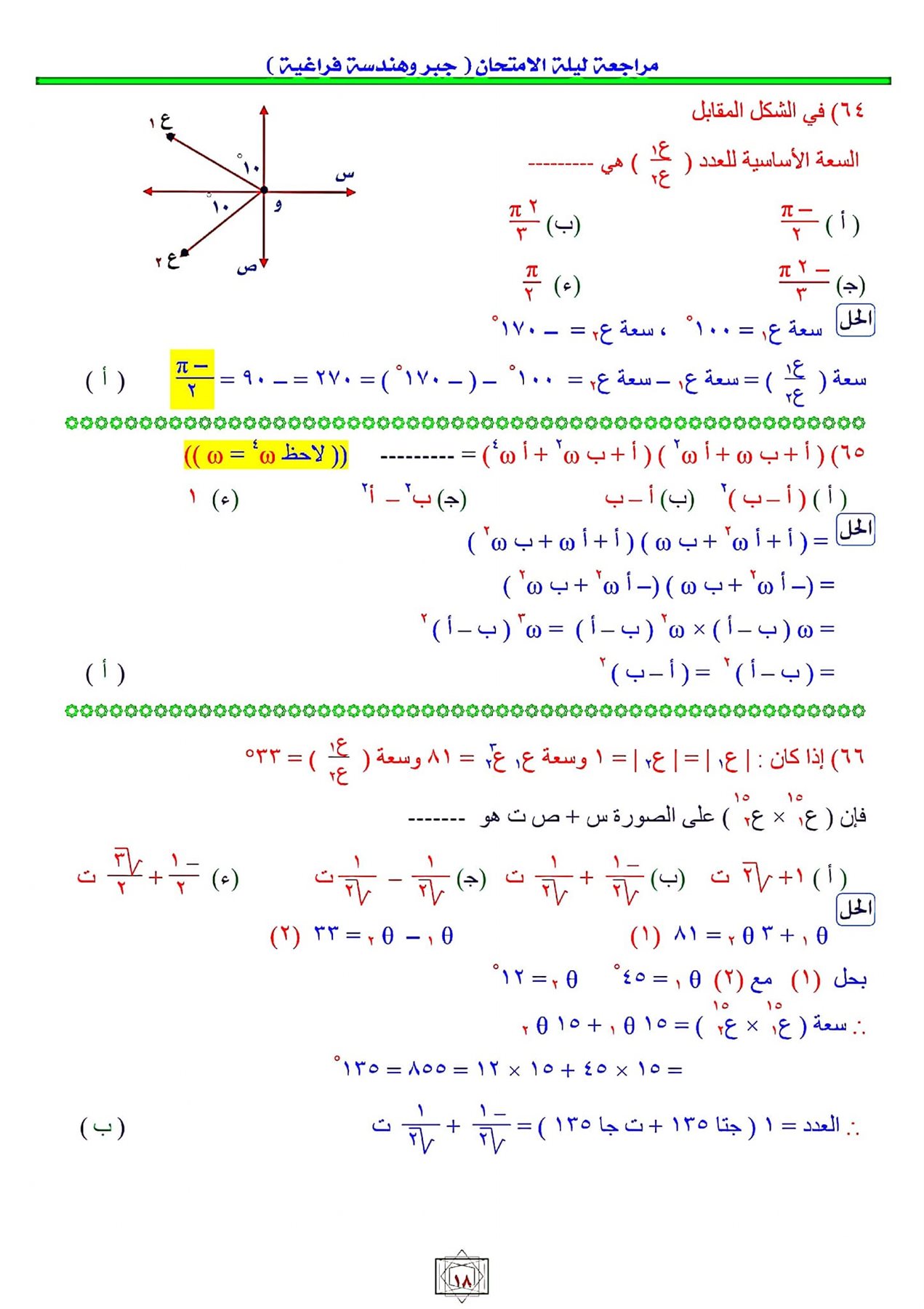 مراجعة جبر وهندسة فراغية للصف الثالث الثانوي 2024