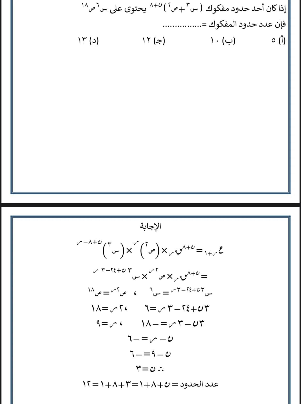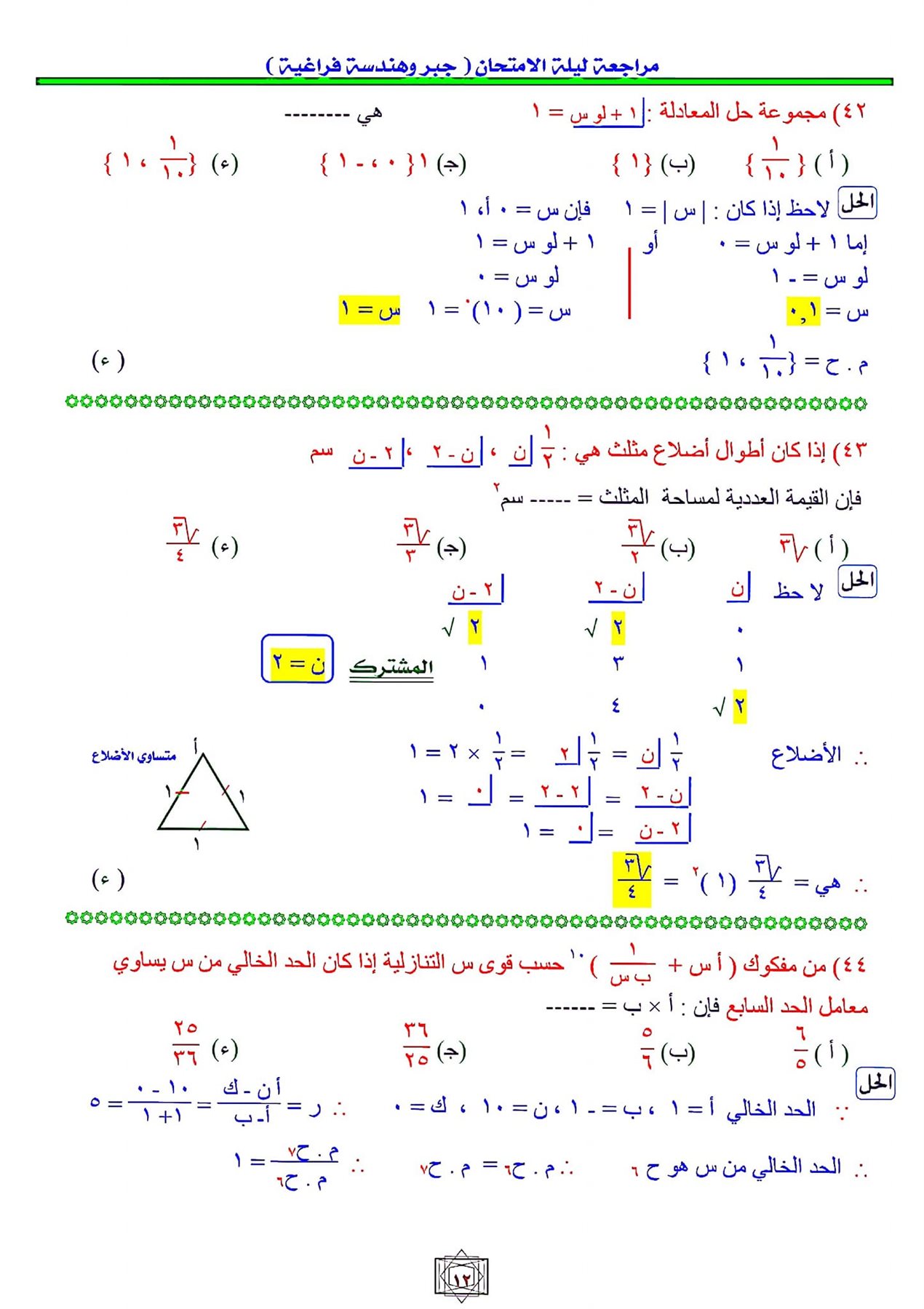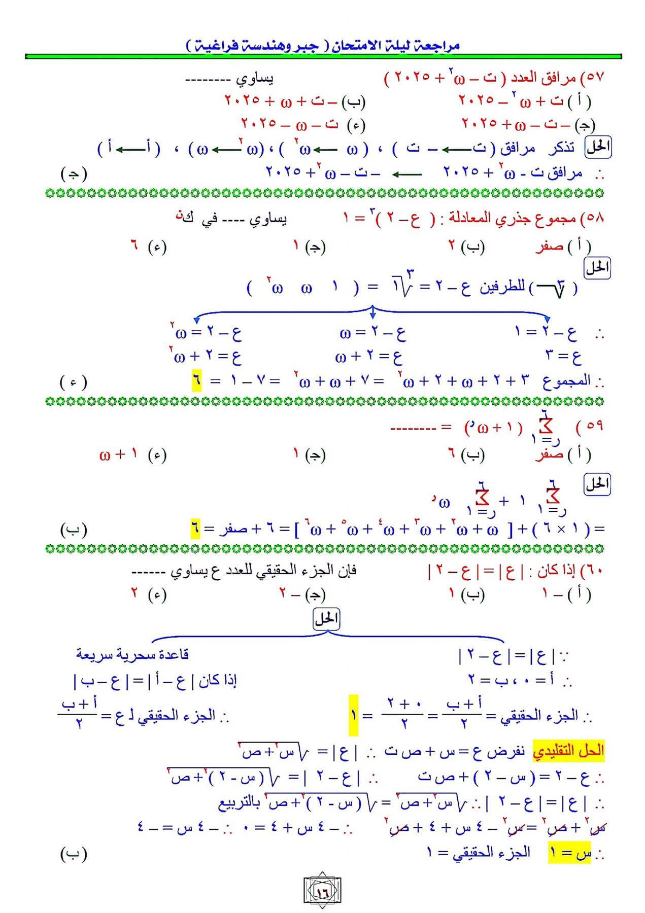 وفيما يلي نعرض للطلاب أهم الأسئلة المتوقعة والمراجعة النهائية لمادة الجبر لطلاب الثانوية العامة:
