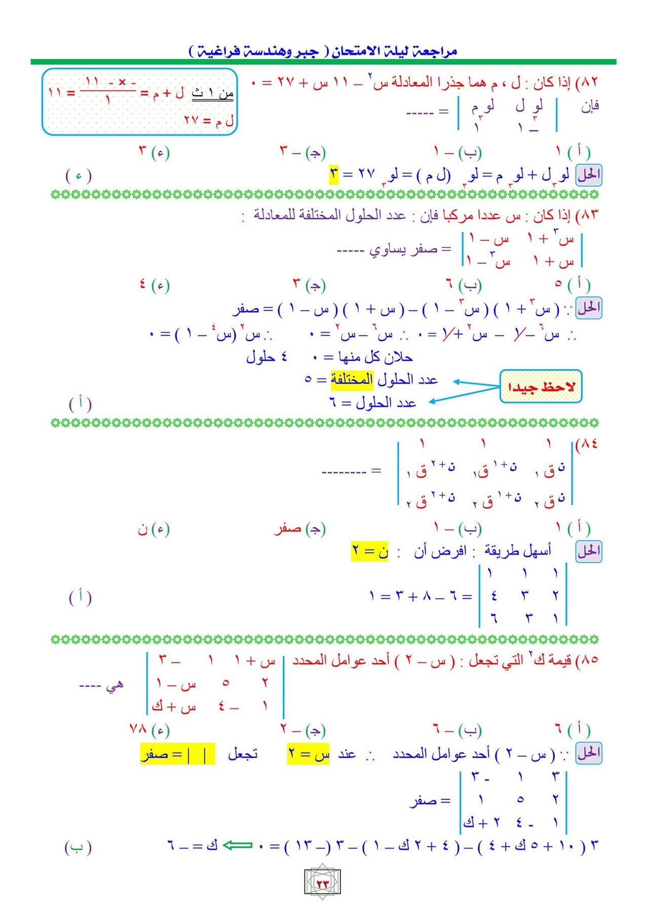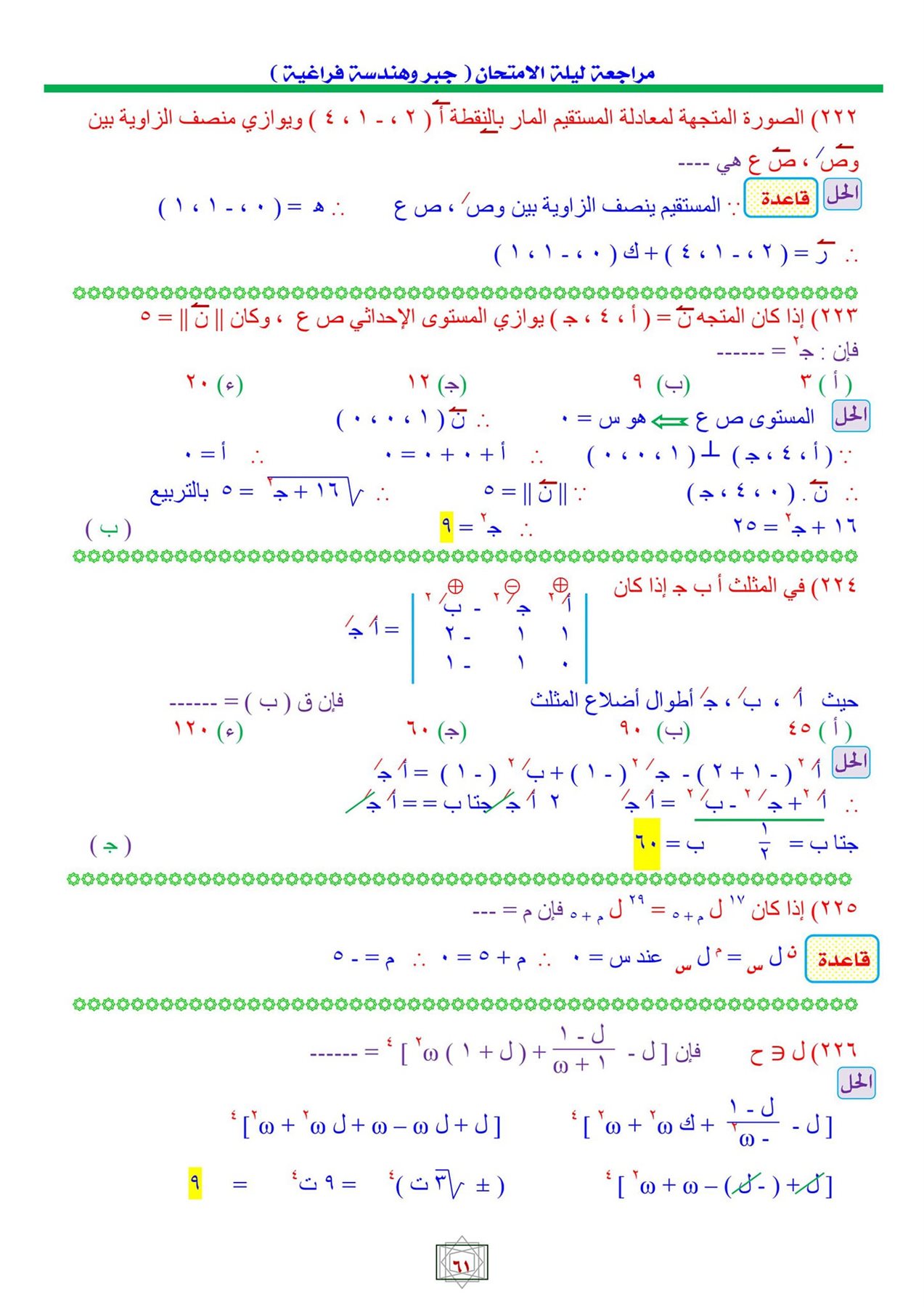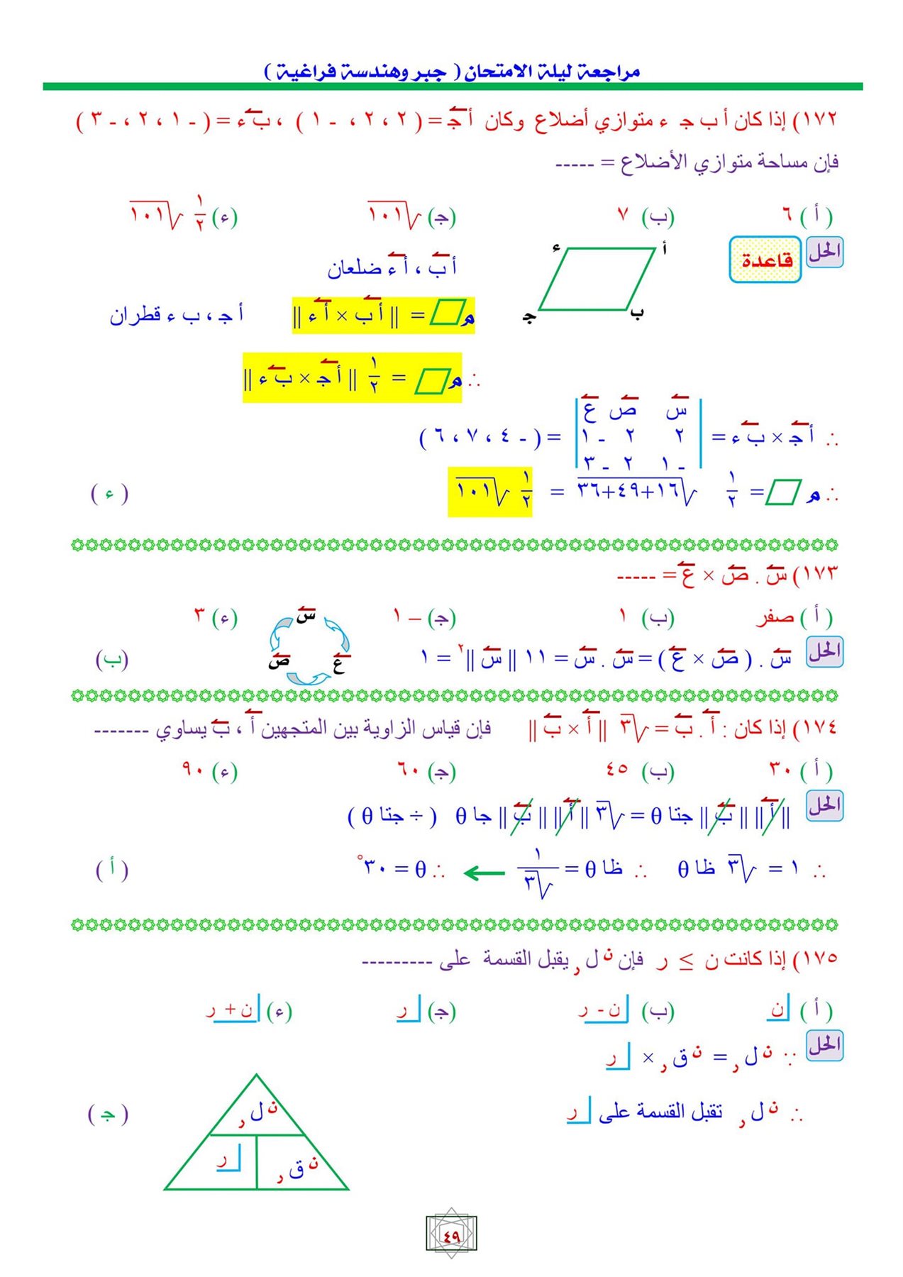 يحتاج الطلاب إلى مراجعة جبر وهندسة فراغية للصف الثالث الثانوي 2024 قبل الامتحان للتدرب على نوعية الأسئلة والصيغ المختلفة للسؤال الواحد، حيث يمكن أن يرتبك الطالب عندما يقرأ سؤالًا ما وهو قد مر عليه بصيغة أخرى والإجابة واحدة لكنه لم يتدرب جيدًا فتملك منه القلق وتشتت عقله، لذلك لابد من الاطلاع على نماذج مراجعة جبر وهندسة فراغية للصف الثالث الثانوي 2024 والتي نعرض أحدها قابلة للتحميل فيما يلي:
