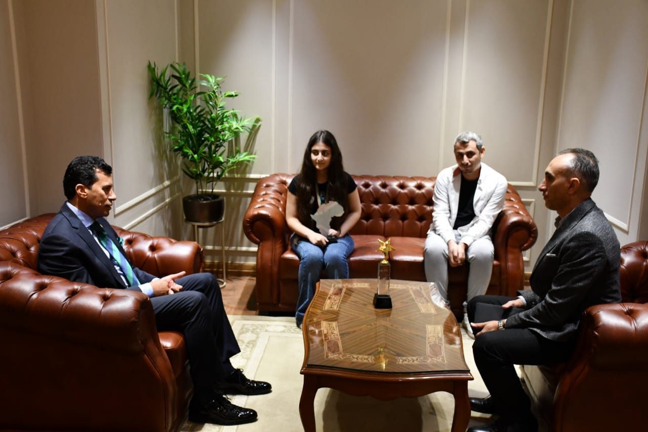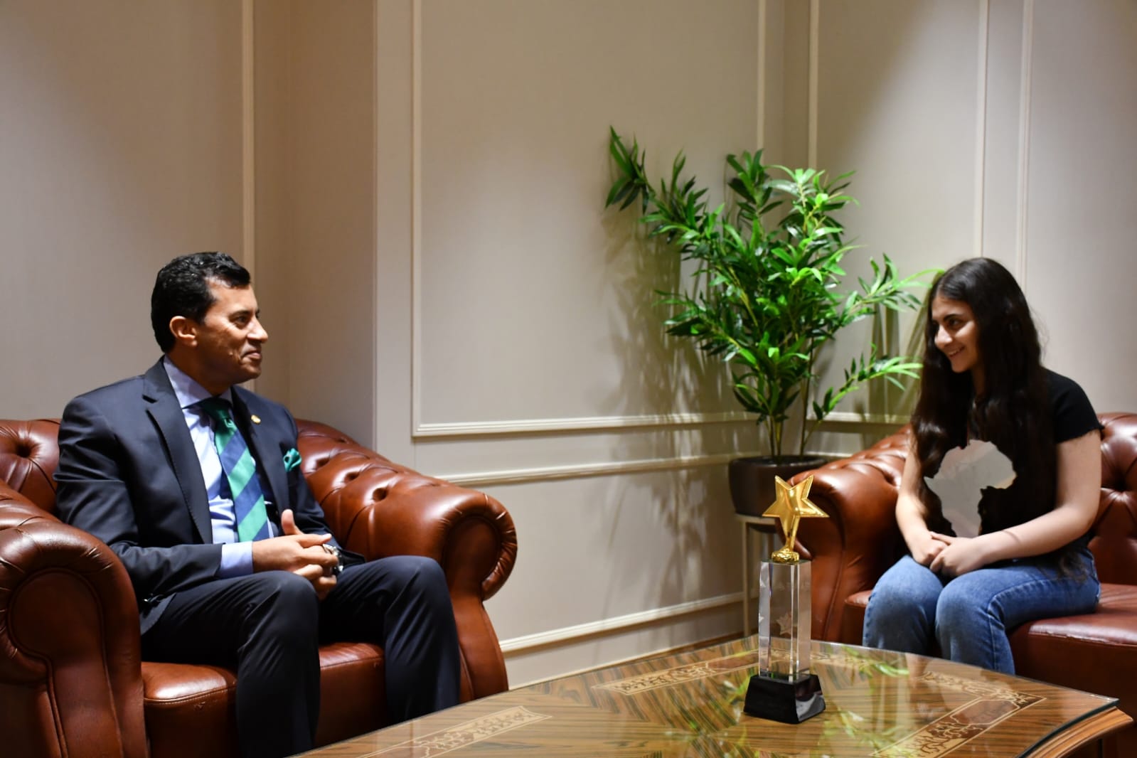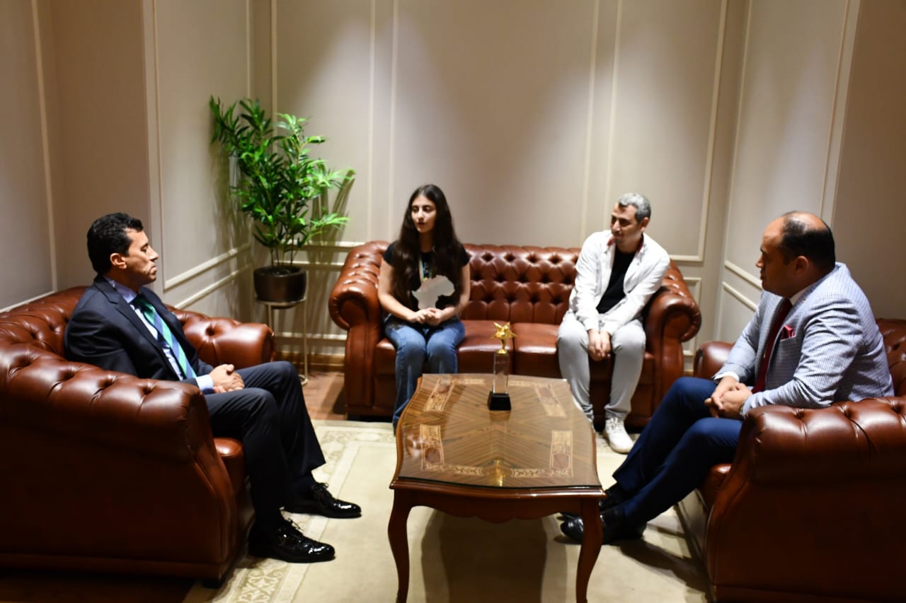 وزير الرياضة يلتقي لاعبة الشطرنج جوي روماني بعد تتويجها ببطولة إفريقيا