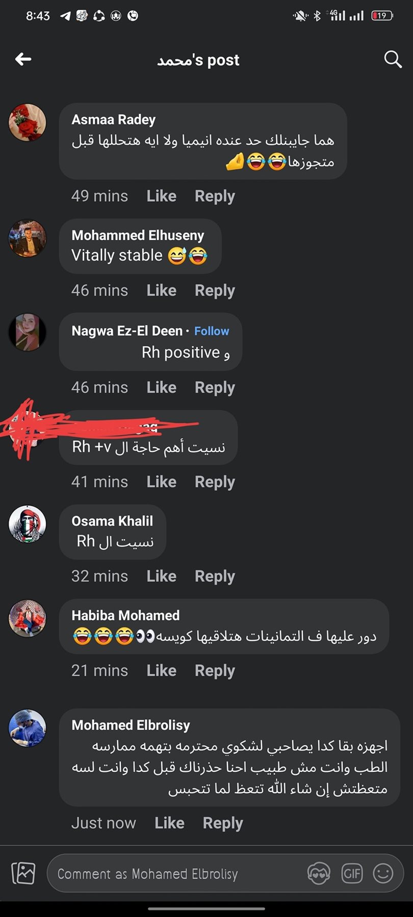 وتابع الدكتور محمد: وبعد تخرجنا فوجئنا أنه ينشر على صفحته منشورات بمزاولته مهنة الطب، حاولنا التواصل معه، وكانت إجابته: أنا مش بضركم في حاجة سيبوني في حالي وملكمش دعوة، فقولنا له: دي حياة ناس يعني إيه ملناش دعوة.