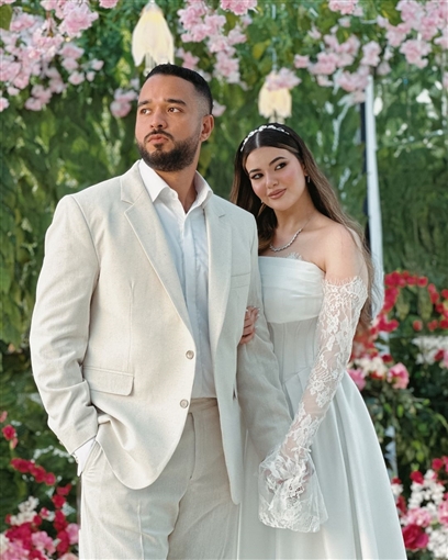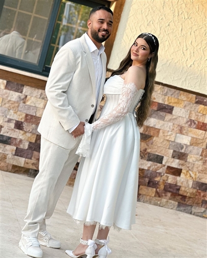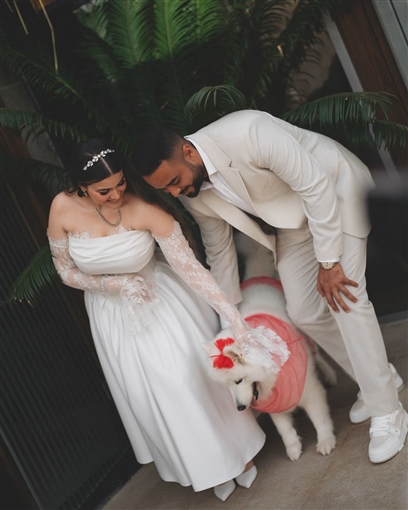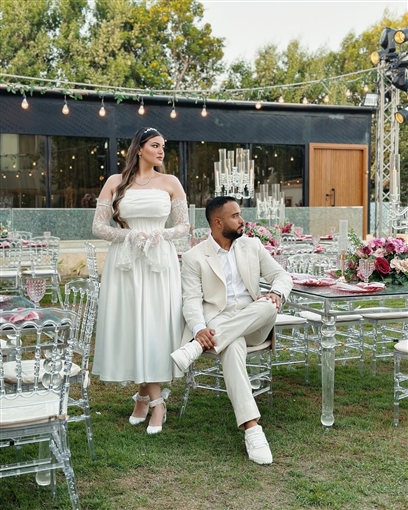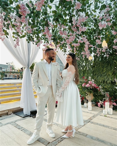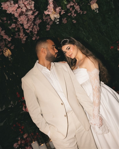 وخطفت بسملة ابنة محمد فؤاد، الانظار بإطلالتها الناعمة خلال حفل خطوبتها، حيث ارتدت فستانًا أبيض اللون بـ أكمام من الدانتيل، واعتمدت ماكياج ناعم وتسريحة شعر بسيطة حيث أسدلت شعرها على كتفيها.