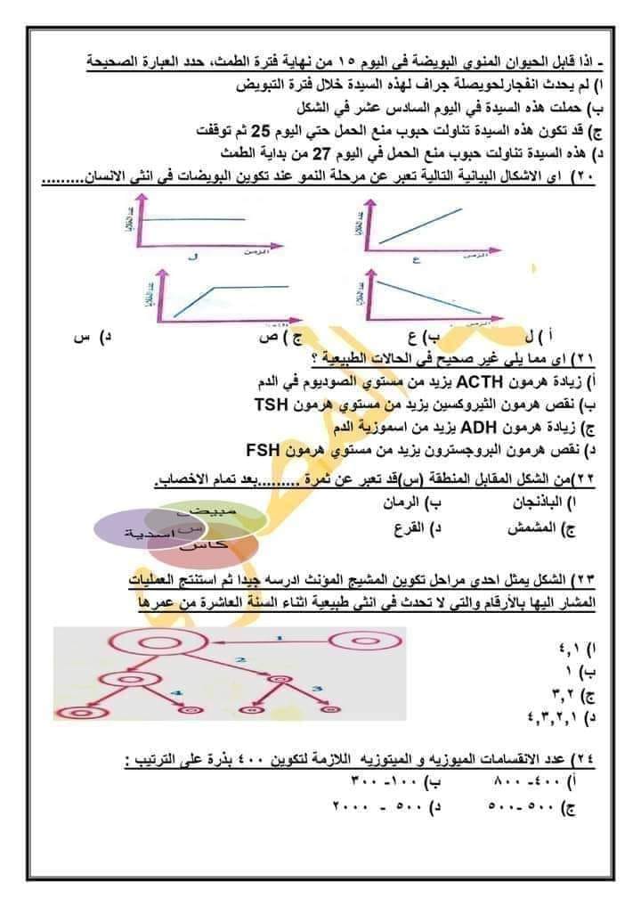 بنك أسئلة في مادة الأحياء لطلاب الثانوية العامة 2024