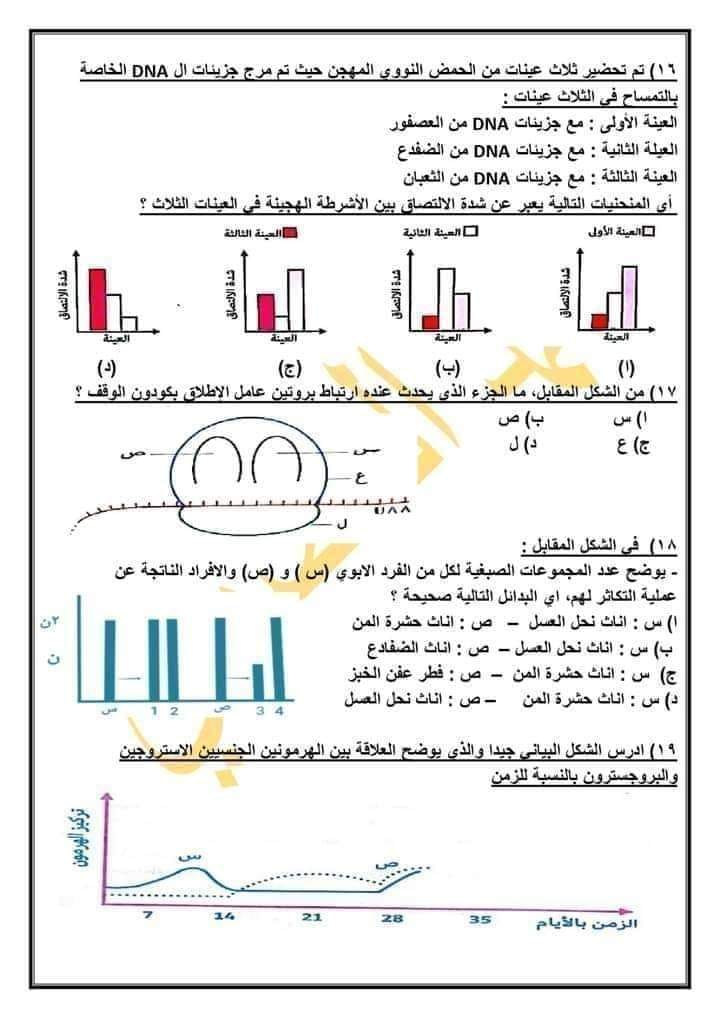 النماذج الاسترشادية في مادة الأحياء لطلاب علمي علوم