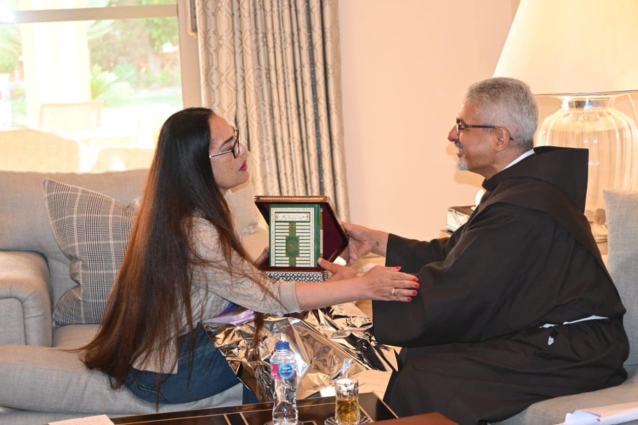 وأهدى الأب بطرس دانيال الفنانة شيريهان مصحفًا، كـ تعبير عن مدى الحب وقوة الوحدة الوطنية، حيث أعربت الفنانة عن سعادتها الكبرى بهذه الهدية الثمينة كما كتبت الفنانة رسالة شكر وإهداء إلى الأب بطرس دانيال والمركز الكاثوليكي، قالت فيها: للمركز الكاثوليكي في نفسي وقلبي وتاريخي الفني وله مكانة عظيمة لدي، ومكانة أتشرف بها في وطني وبلدي العظيمة مصر، وشعبه الكريم وتشرفت وأنا صغيرة بتكريمه لي، واليوم تشرفت أكثر بي أكثر من جدًا بتشريفي بزيارة الإنسان الراقي والنبيل والعزيز بطرس دانيال المحترم.. كل الاحترام والتقدير مني.
