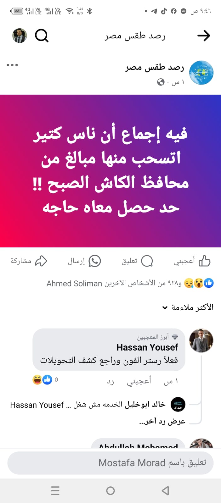 اشتكى عدد كبير من عملاء محافظ كاش، بسبب وجود تلاعب في المبالغ الخاصة بهم في المحافظ الإلكترونية، خلال الساعات القريبة الماضية.