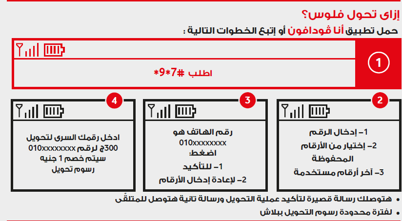 - رسوم التحويل 1 جنيه عند التحويل لمحفظة فودافون كاش.