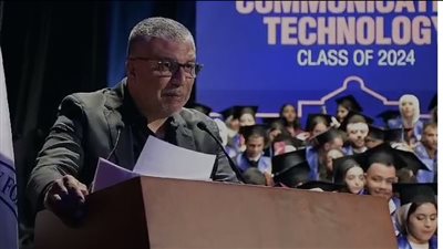 تسلم عصام شلتوت، الناقد الرياضي ومستشار التحرير بموقع القاهرة24، درع كلية الإعلام لجامعة مصر للعلوم والتكنولوجيا، خلال تكريم الجامعة للموقع.
