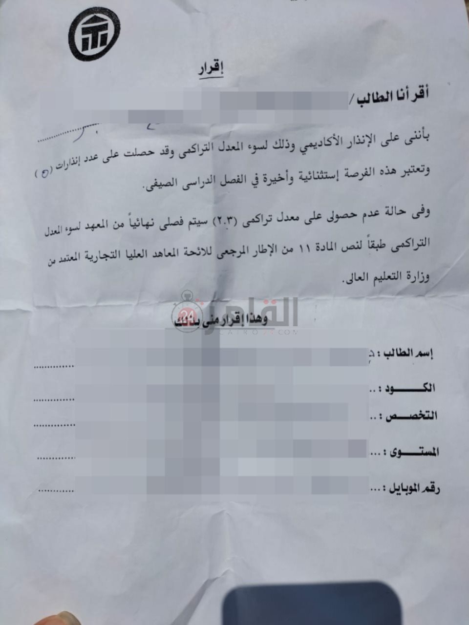 رغم وعودهم.. الإدارة تجبر الطلاب على توقيع إقرار بالمعدل التراكمي بعد شكاواهم
