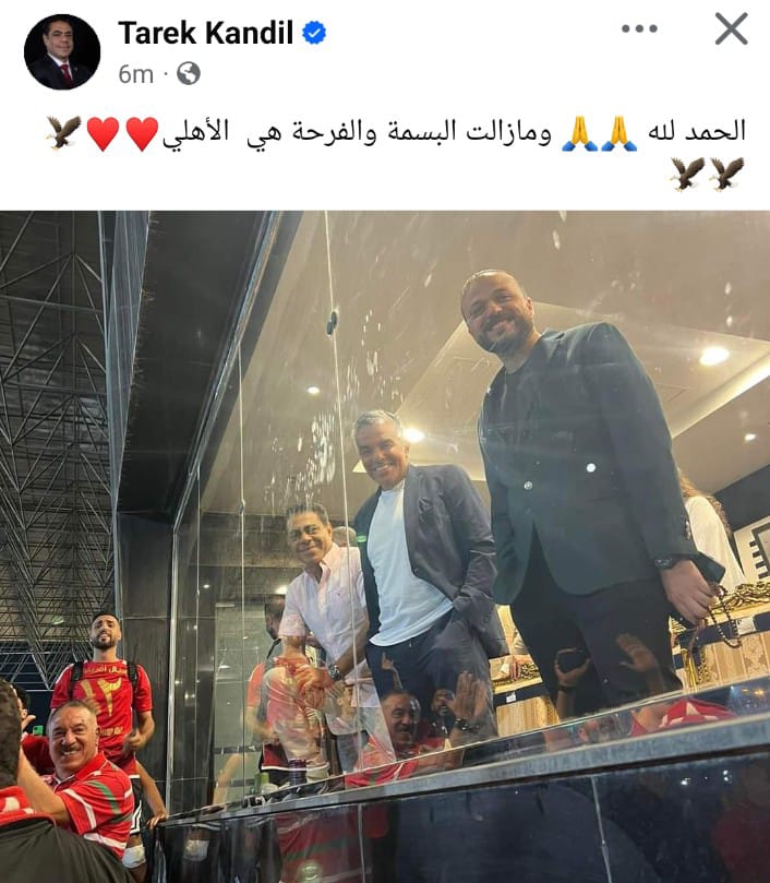 في حين قال طارق قنديل عضو مجلس إدارة النادي الأهلي، عبر حساباته الرسمية على مواقع التواصل الاجتماعي: الحمدلله.. ومازالت الفرحة والبسمة هي الأهلي.