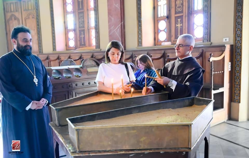 ونشر المركز الكاثوليكي المصري صورا من زيارة الفنانة ماجدة الرومي إلى دير الشهيد أبي سيفين ودير مارجرجس في منطقة مصر القديمة.