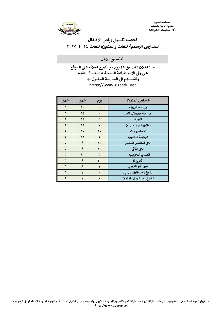 نتيجة تنسيق رياض الأطفال بالرقم القومي 2024 القاهرة