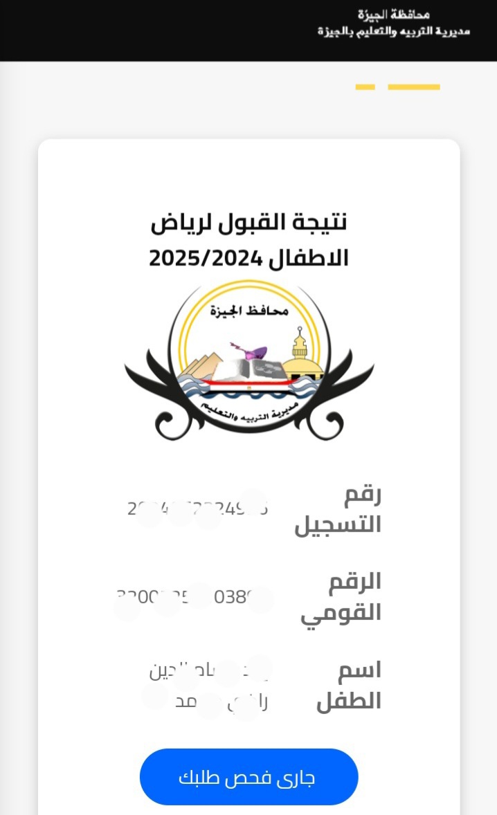 الاستعلام عن نتيجة تنسيق رياض الأطفال بالرقم القومي الجيزة