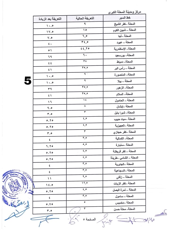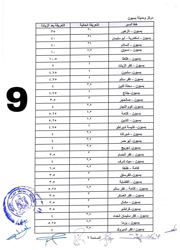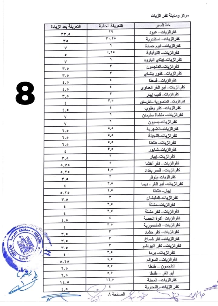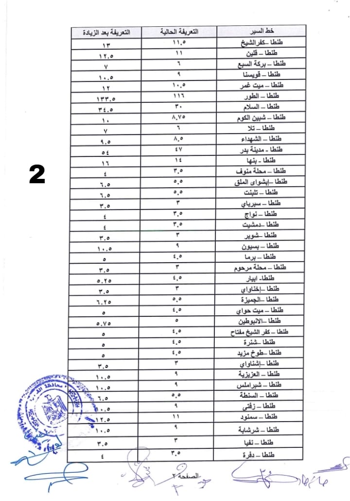ونص قرار محافظ الغربية على زيادة تعريفة الركوب لوسائل المواصلات لجميع الخطوط الداخلية بالمحافظة والخارجية بين المحافظات، بما يتناسب مع الزيادة المقررة.