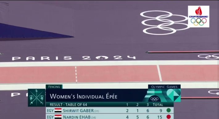 كما وصلت المبارزة المصرية ناردين إيهاب صاحبة المركز 59 في التنصيف إلى دور الـ 32 بعدما فازت على مواطنتها شيرويت جابر صاحبة المركز الـ 75 عالميًا بنتيجة 15-9.