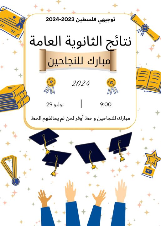 وفي بيان رسمي، تقدمت وزارة التربية والتعليم الفلسطينية بتهنئة الطلاب وأوائل الثانوية العامة 2024 في فلسطين على نجاحهم وتفوقهم في ختام مرحلة التوجيهي، متمنية لهم المزيد من النجاح والتفوق خلال السنوات الدراسية القادمة.