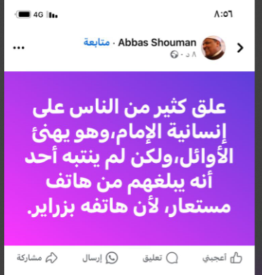 وقال شومان خلال تصريحات له عبر حسابه الشخصي على “فيس بوك”: علق كثير من الناس على إنسانية الإمام، وهو يهنئ الأوائل، ولكن لم ينتبه أحد أنه يبلغهم من هاتف مستعار، لأن هاتفه بزراير.