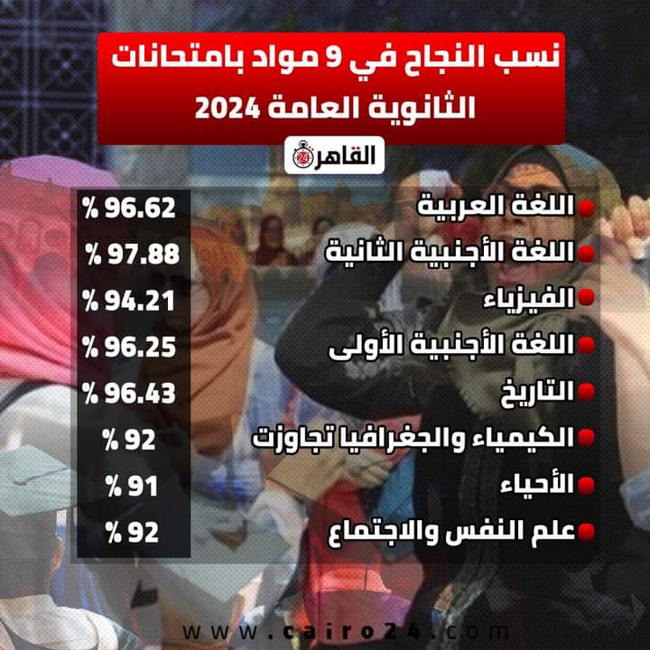نسب النجاح في مواد امتحانات الثانوية العامة 2024