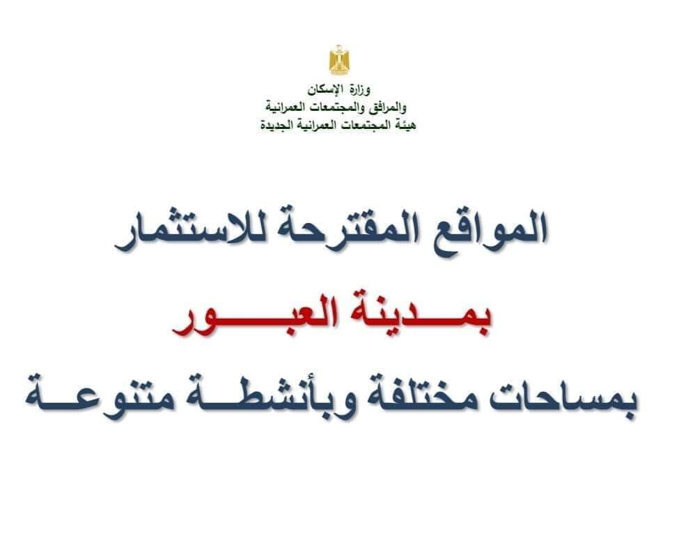 وقال أحمد رشاد رئيس جهاز تنمية مدينة العبور، إن قطع الأراضي المقترحة للاستثمار لهذا الشهر 4 قطع بمساحات مختلفة ، وأنشطة متنوعة بنظام التخصيص المباشر بأنشطة متنوعة تجاري، تجاري سكني، نادي اجتماعي.