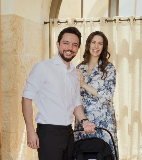 أول صور تجمع ولي العهد الأردني والأميرة رجوة برفقة مولودتهما