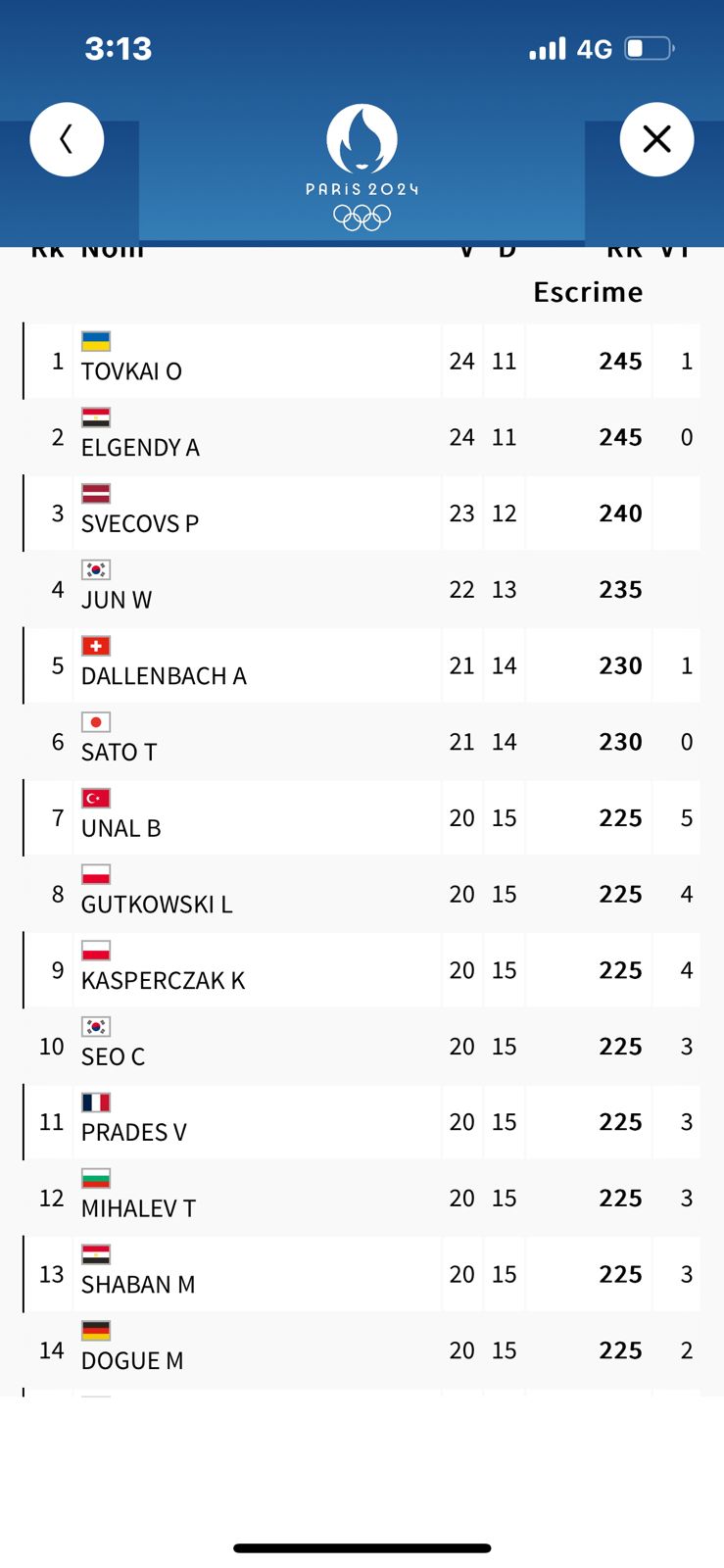 أحمد الجندي يتراجع للمركز الثاني بترتيب السلاح في الخماسي الحديث بأولمبياد باريس