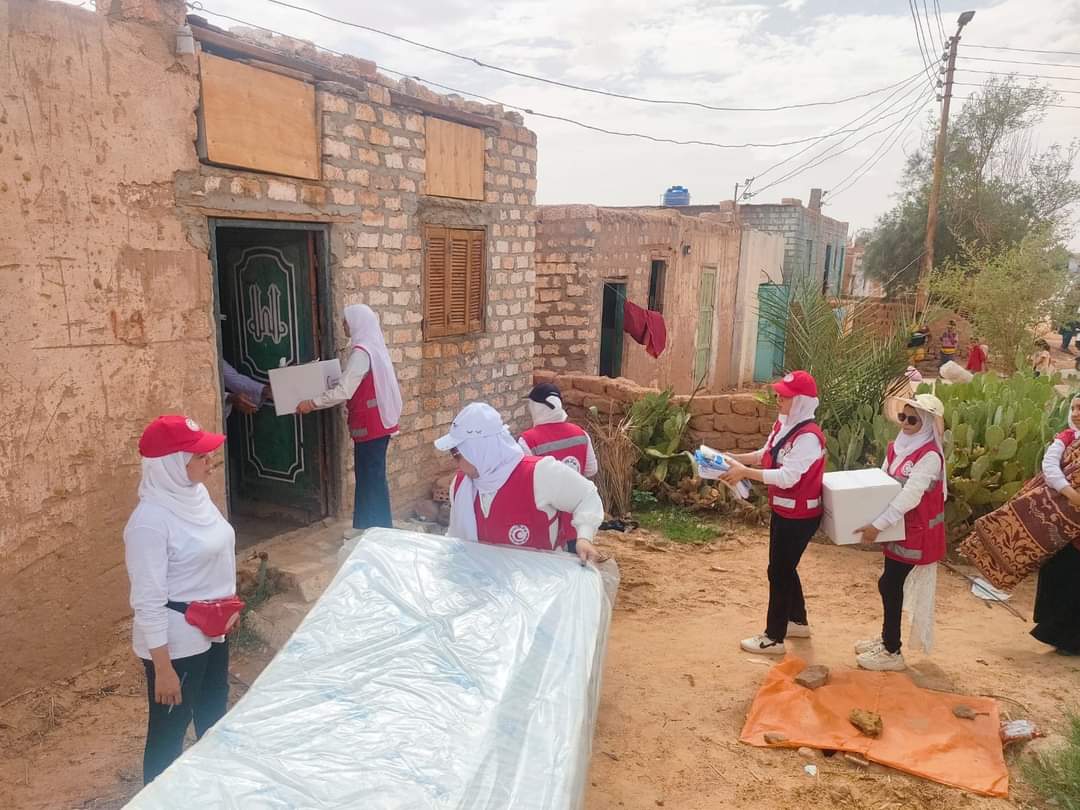 ودفعت جمعية الهلال الأحمر المصري، بقافلة إغاثية مكونة من 7 سيارات نقل، شملت سلات غذائية، بطاطين، حصر، مراتب، ملايات، حقائب نظافة شخصية، وما زالت فرق الهلال الأحمر المصري المختلفة تواصل جهودها لدعم الأسر المتضررة بالقرية ومحاولة تخفيف معاناتها.