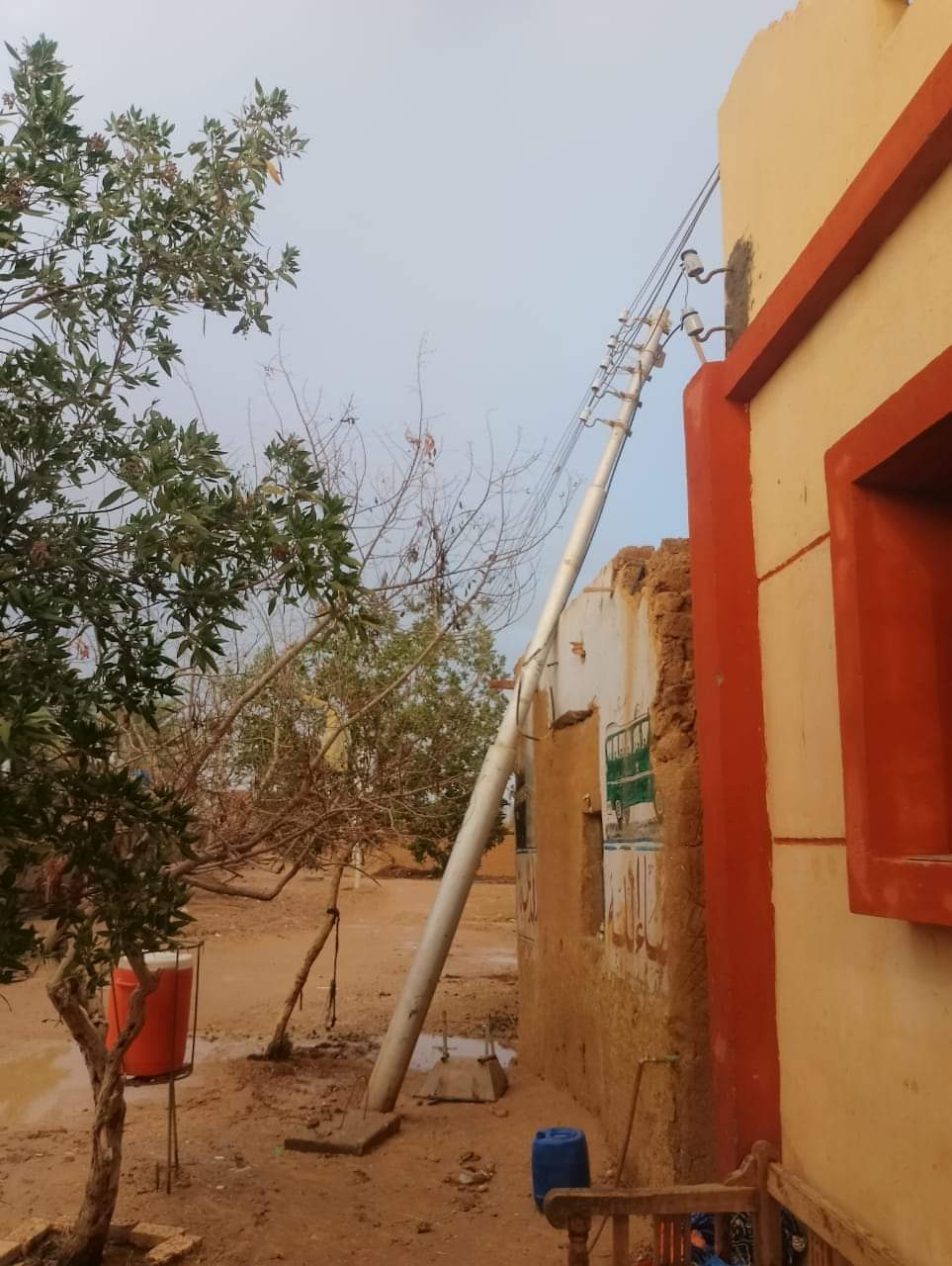 سقوط أعمدة إنارة وتضرر منازل المواطنين بسبب الأمطار في الوادي الجديد| صور