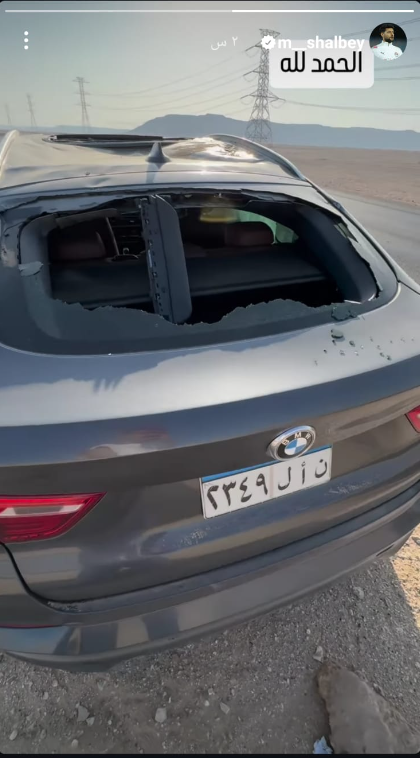 ونشر مصطفى شلبي صورًا لسيارته عبر حسابه الرسمي على إنستجرام، أوضحت آثار الحادث، حيث اكتفى بالتعليق: الحمد لله.