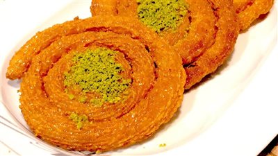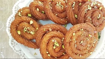 - اقلي المشبك في الزيت حتى يأخذ اللون الأحمر ثم ارفعيه في الشربات وقدميه بعد دقيقة واحدة فقط من وضعه في القطر أو العسل.