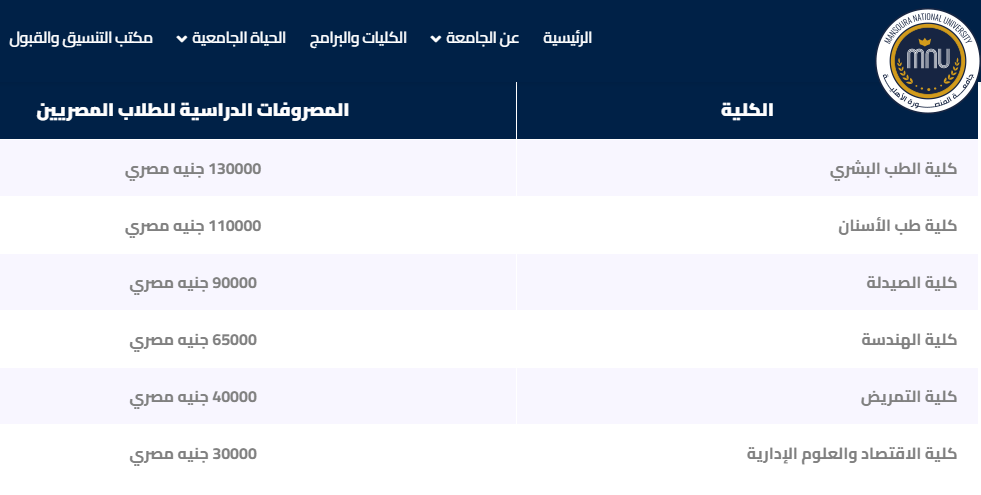 - مصاريف كلية الطب البشري في جامعة المنصورة الأهلية 130 ألف جنيه.