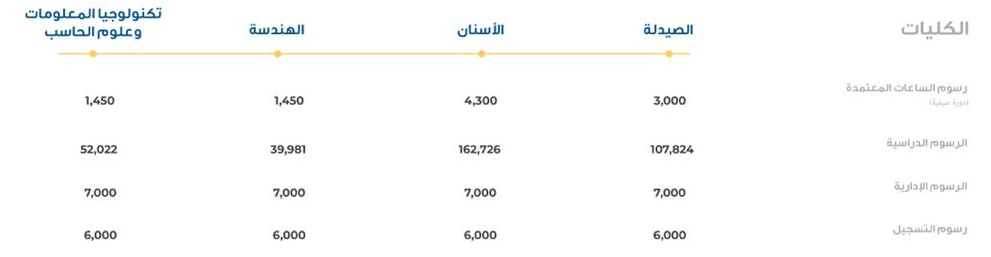 - مصاريف كلية الصيدلة للوافدين بعد الخصم 2900 دولار أمريكي.