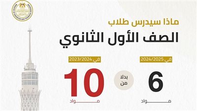 وفي نهاية التقرير نكون عرضنا مواد الصف الأول الثانوي النظام الجديد، والتي تتضمن على 6 مواد أساسية، تساعد الطالب على فهم المنهج بشكل أفضل، ويكون حصيلة معلوماتية من كل مادة يدرسها، مع العلم أن المواد الفلسفية تم تقسيمها على فصلين، فإن الصف الأول الثانوي سيدرس مادة الفلسفة، بينما في الصف الثاني الثانوي يدرس مادة علم النفس، ولن يدرس الطالب هذه المواد في شهادة الثانوية العامة.