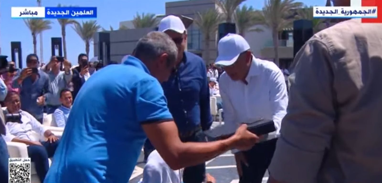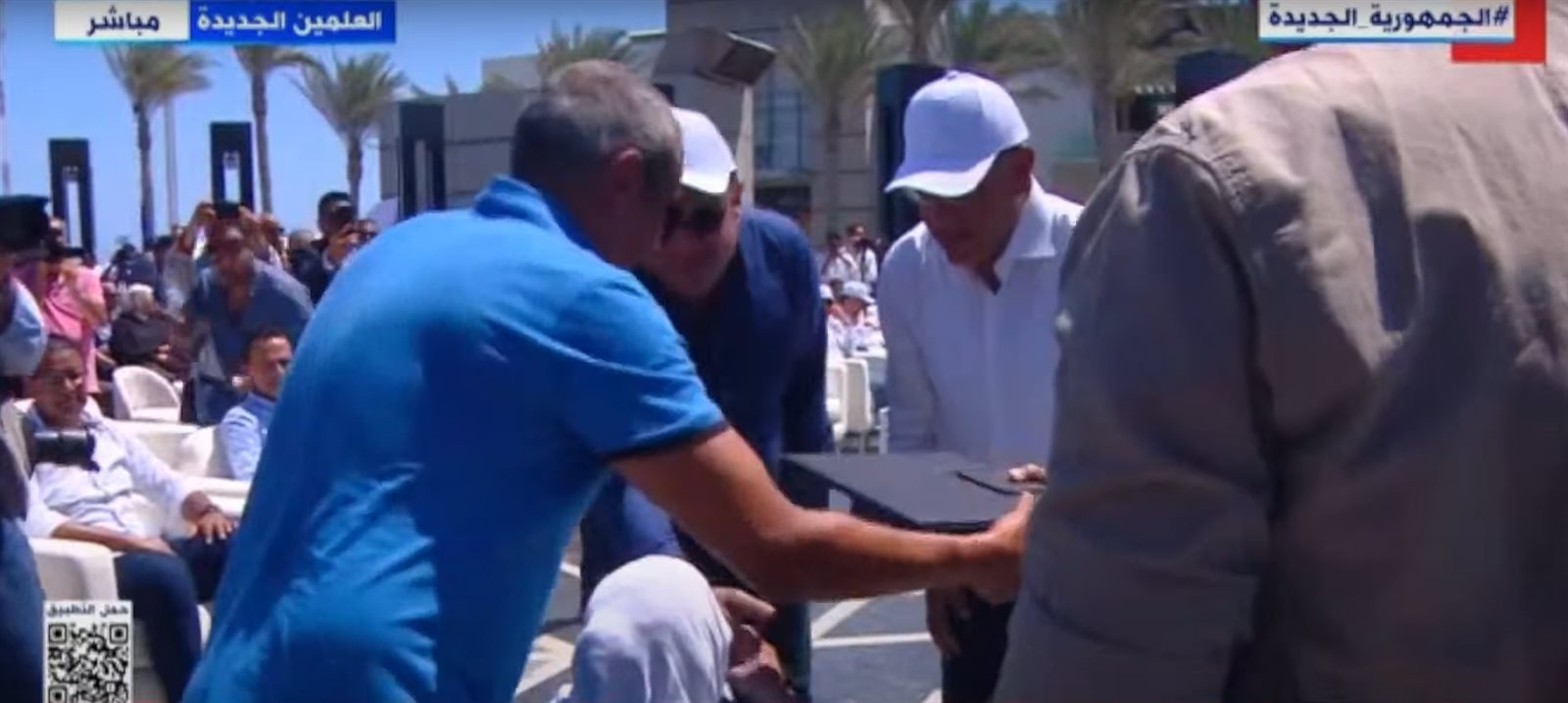 في لفتة إنسانية ترك الدكتور مصطفى مدبولي، رئيس مجلس الوزراء، المنصة لتسليم سيدة قعيدة، عقد وحدة سكنية بمدينة العلمين الجديدة في المرحلة الأولى.
