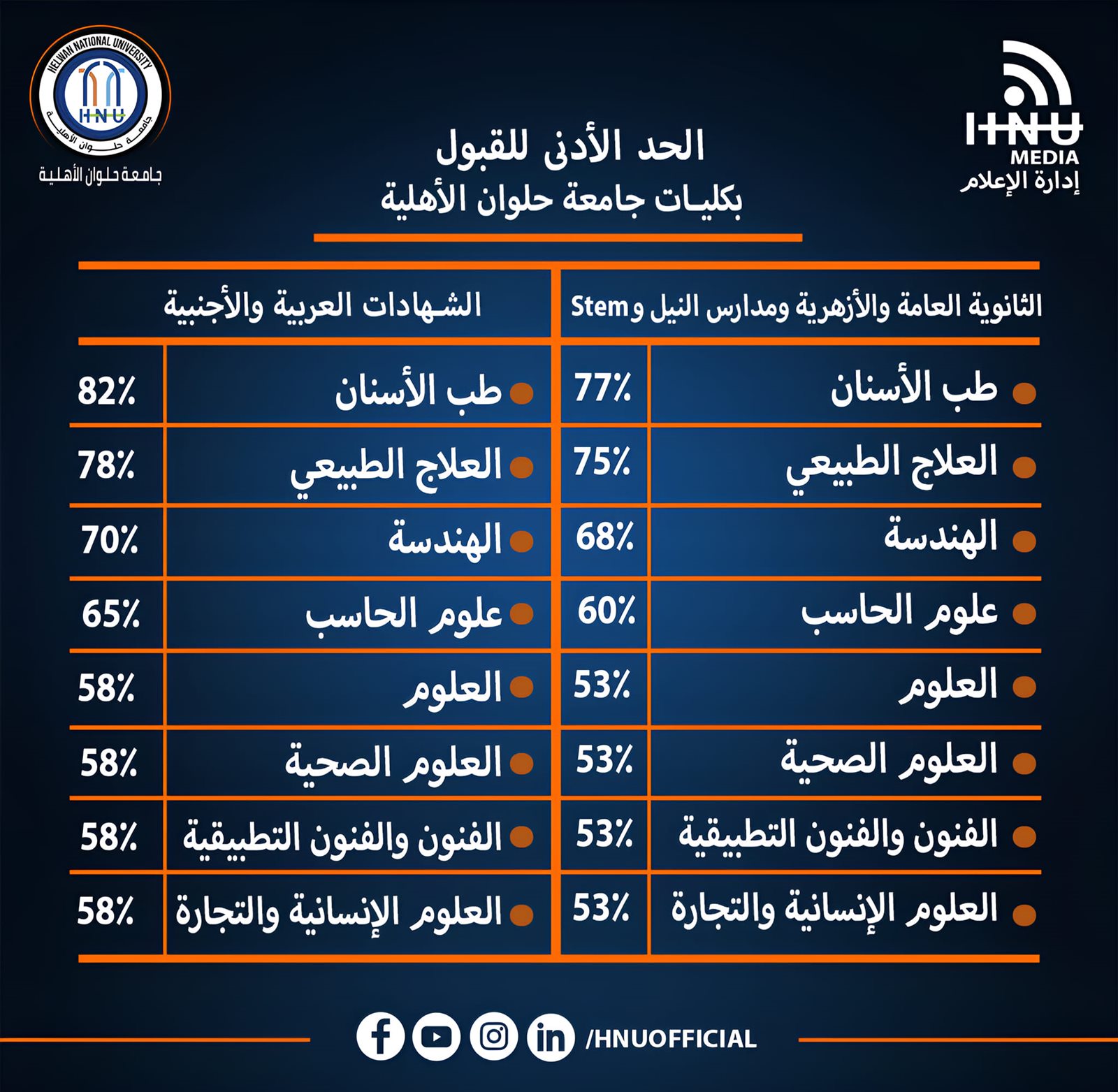 - تنسيق العلوم جامعة حلوان الأهلية 2024 عند 53%.