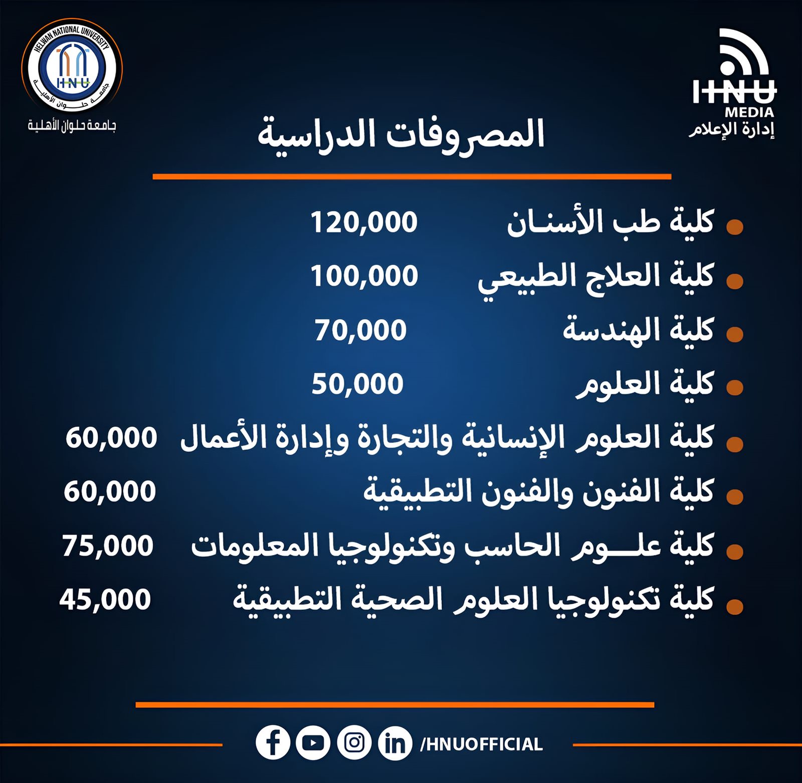 المصروفات الدراسية لكليات جامعة حلوان الأهلية