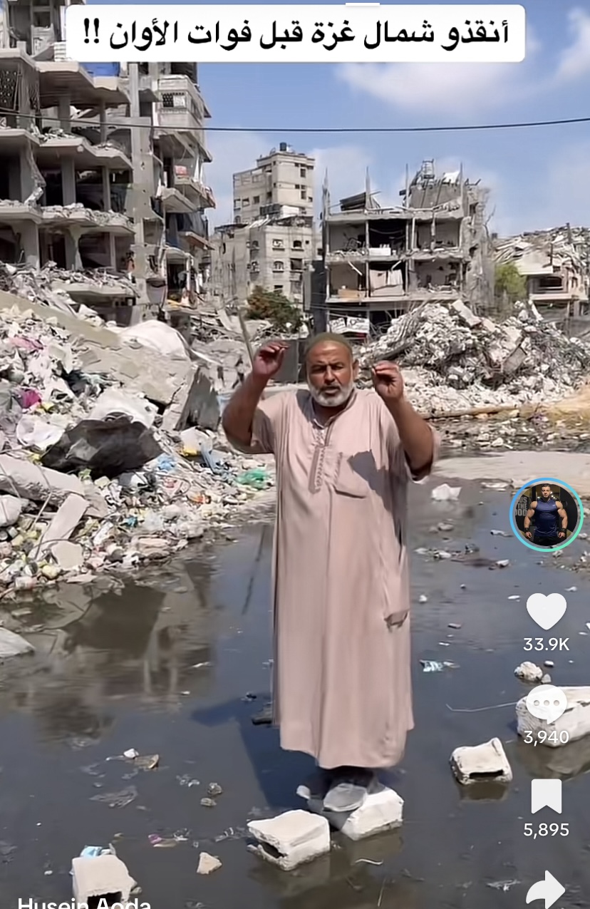 نشر شاب فلسطيني يدعى هاني عودة، مقطع فيديو عبر حسابه الشخصي بموقع تيك توك، لمسن من شمال قطاع غزة، يستغيث من سوء الأوضاع هناك، وخاصة بعد انهيار شبكة الصرف الصحي.