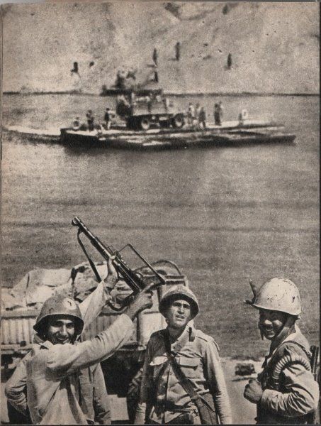 وفي تمام الساعة الثانية ظهرا من يوم السبت الموافق 6/10/1973، عبرت قوات الضربة الجوية الأولى، وقوامها 200 طائرة، على ارتفاع منخفض فوق قناة السويس قاصدة إلى تنفيذ المهمة الأولى في العملية، ثم توالت المهمات العسكرية المرتبة والمنظمة والمخطط لها بدقة شديدة، وعندما حل منتصف الليل كانت هناك خمس فرق كاملة من المشاة والمدرعات على الضفة الشرقية لقناة السويس، وكانت معظم مواقع خط بارليف الحصينة قد حوصرت، ونصفها تم اقتحامه.