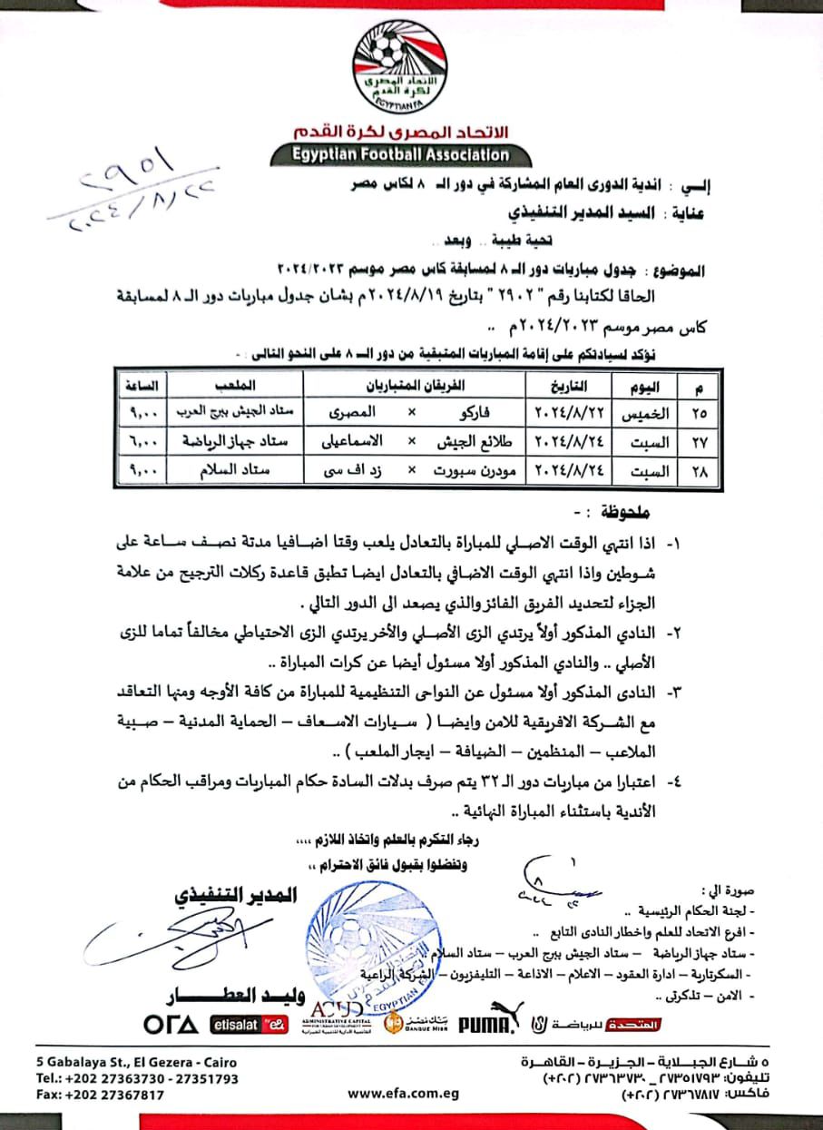 ونوهت لجنة المسابقات إلى بعض التعليمات الخاصة بمباريات دور الثمانية من المسابقة وجاءت كالتالي: