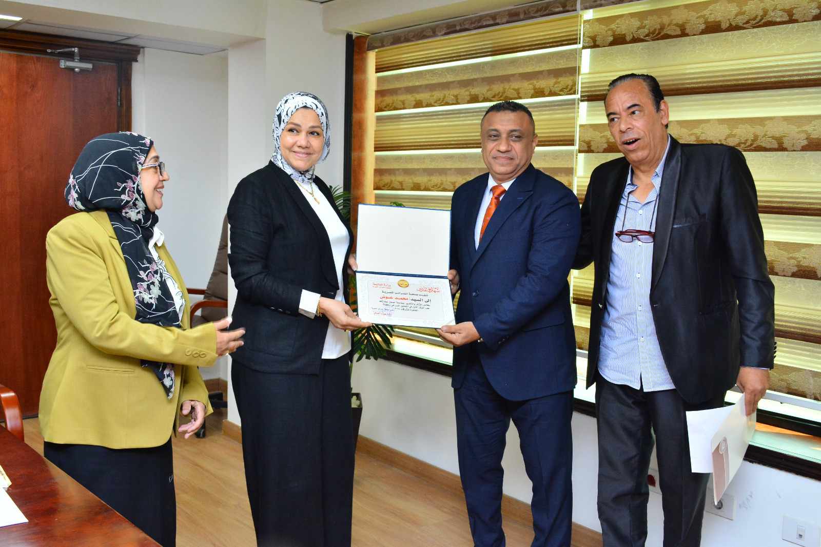جاء ذلك خلال قيامها بتكريم فريق التمثيل بمصلحة الضرائب المصرية لحصولهم على المركز الأول في بطولة القاهرة للشركات للتمثيل المسرحي عن العرض المسرحي بعنوان عرين المجانين، والذي تم تقديمه على مسرح برج بدر بالمعادي تحت إشراف الاتحاد العام للشركات وبحضور لجنة متخصصة.