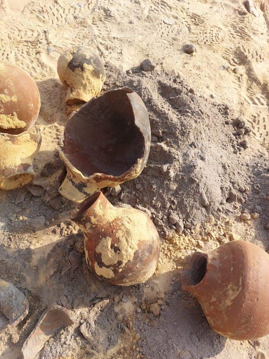 أما عن صور الفخار فذكر، أن الفخار كان متهالك وكان بعض العمال مصاحبين الحفار لتنظيف الرمل المستخرج، وكسر الفخار متهالك جدا معلقًا: العمال كانوا بيجمعوه وتم إدخاله المخزن وهو في حالة سيئة تماما.