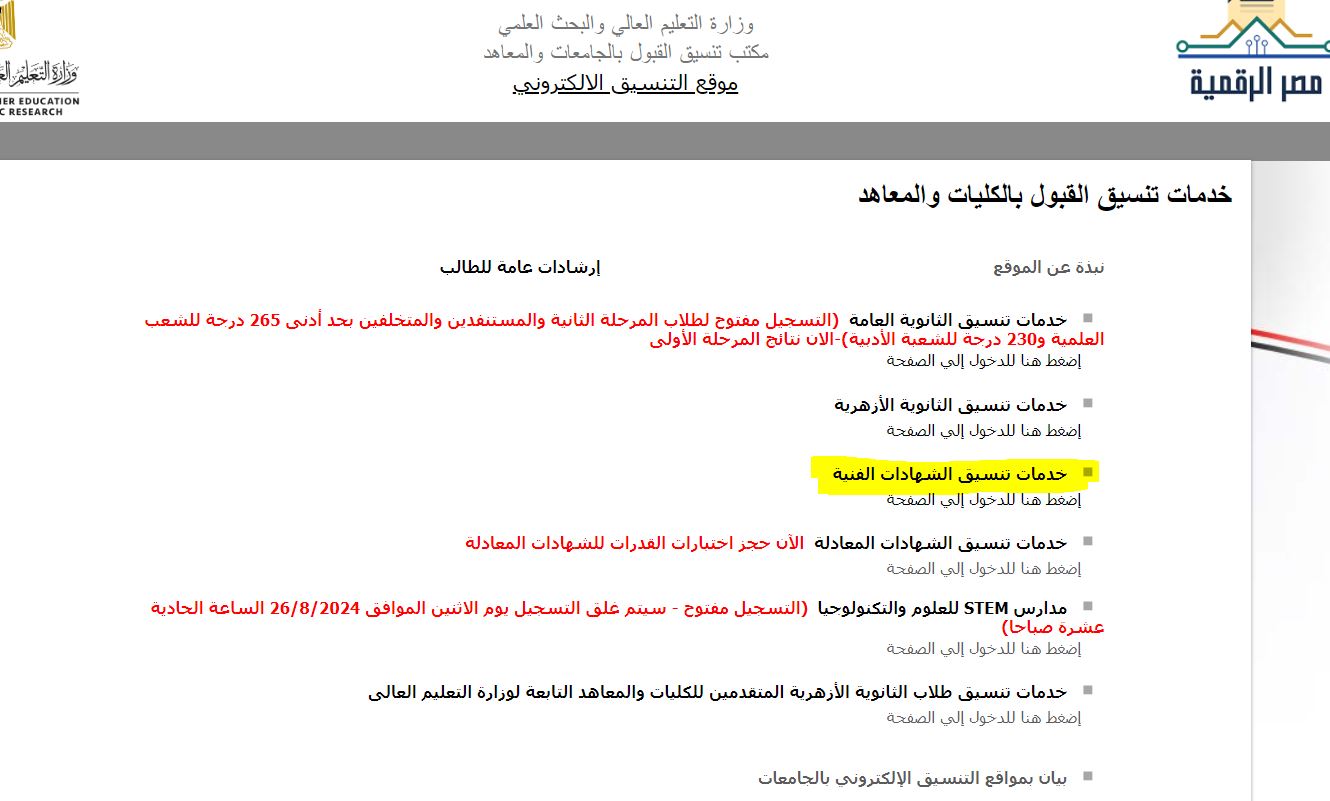 من المتوقع أن يرتفع تنسيق الدبلومات الفنية 2024 عن العام الماضي، حيث سجلت نسب النجاح في الدور الأول هذا العام عند 70.9%، فيما بلغت في عام 2023 عند 64،47%، حيث يمكن لطلاب الدبلومات الفنية على حسب نوع التخصص من خلال الروابط الآتية: